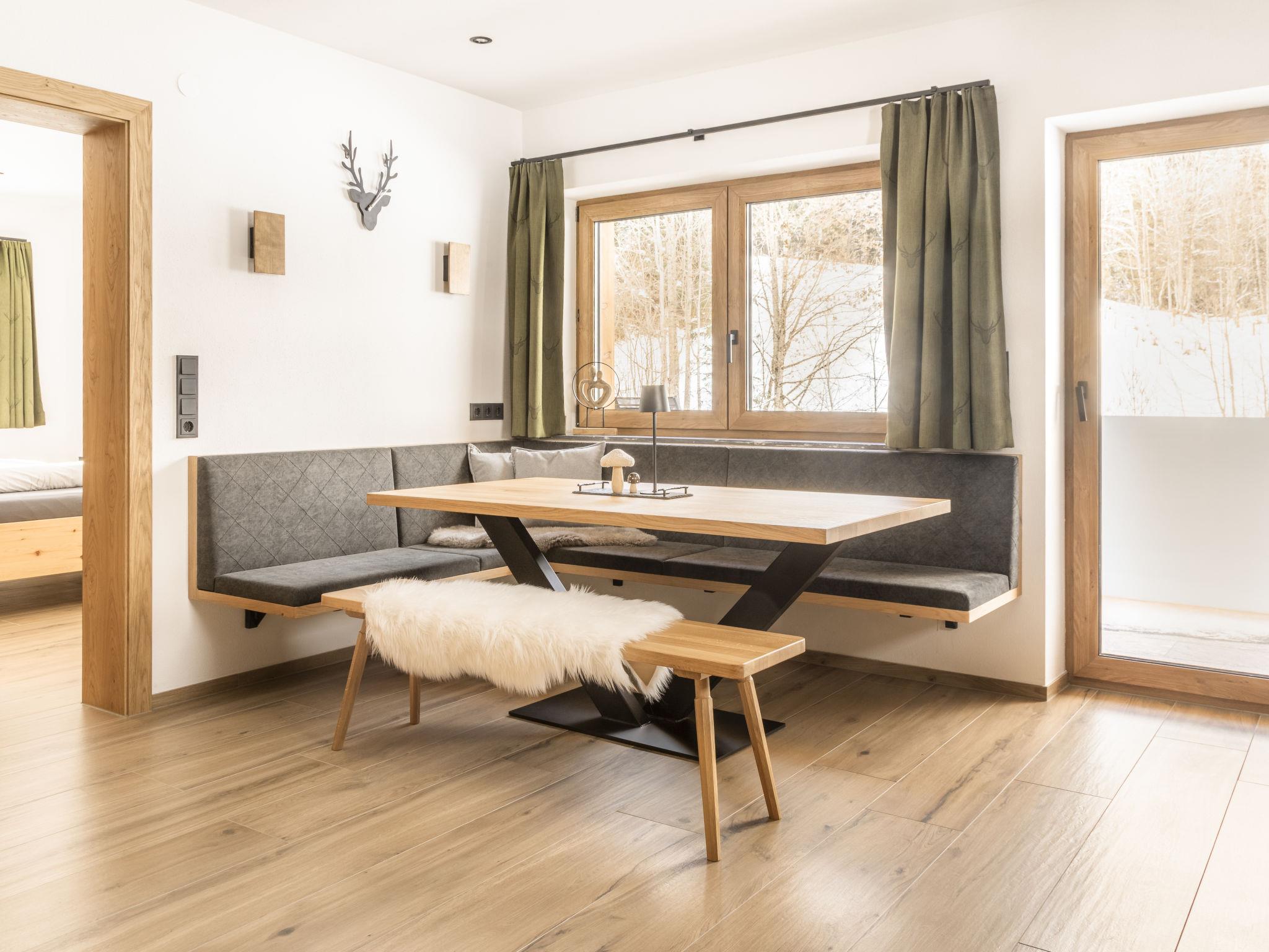"Jagerstüberl-60qm EG mit gr Terrasse", 3-room apartment 60 m2, on the ground floor. Comfortable and modern furnishings: living/dining room with satellite TV. 2 double bedrooms. Large kitchen (oven, dishwasher, 4 induction hot plates, microwave, freezer, electric coffee machine) with dining nook. Shower, sep. WC. Electric heating, underfloor heating. Large terrace 25 m2. Terrace furniture. Very beautiful view of the mountains and the countryside. Facilities: Internet (WiFi, free). Please note: non-smokers only.