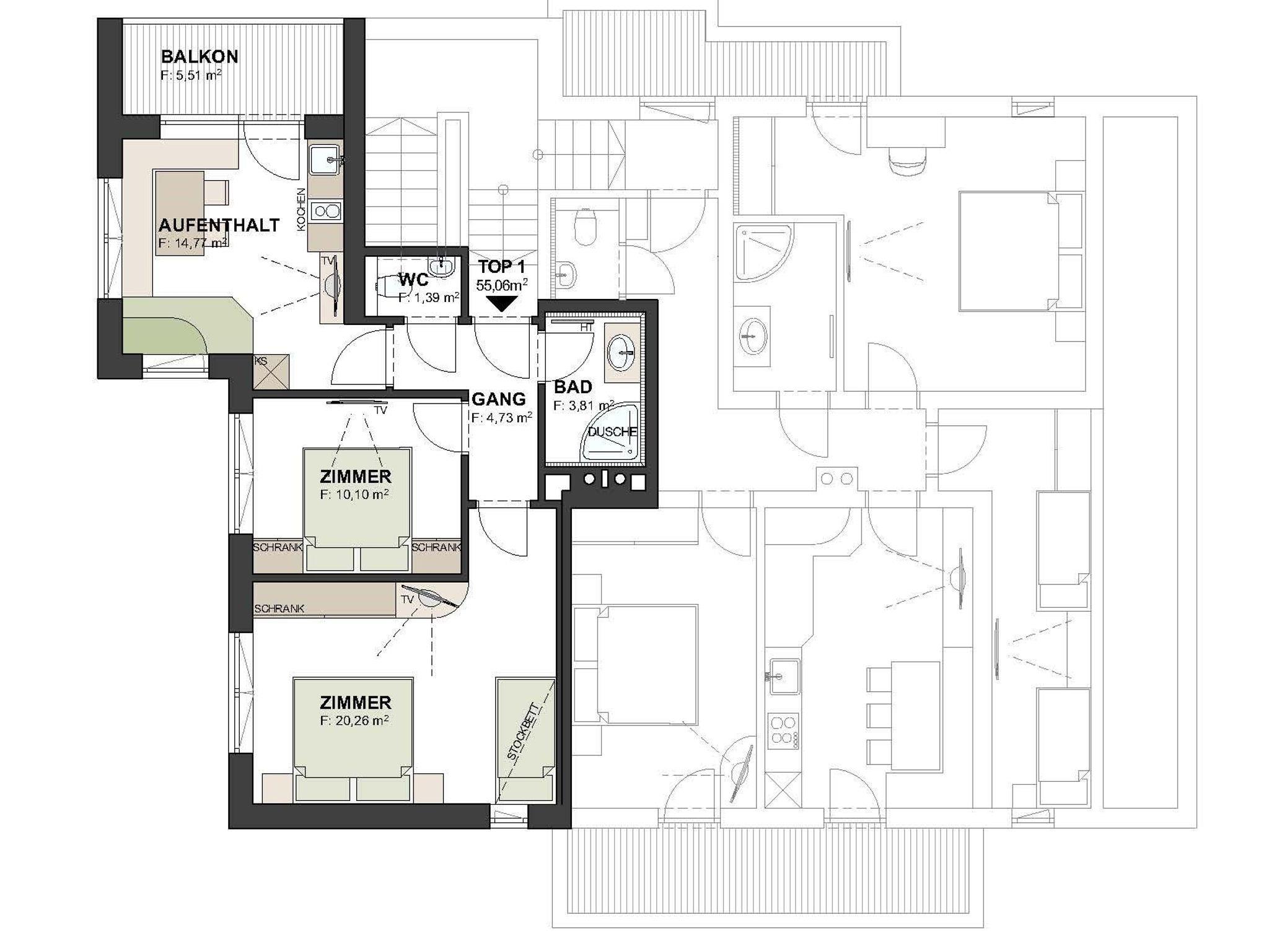 Komfortferienwohnung mit Balkon und gemütlicher Wohnküche, 2 Schlafzimmer, Kabel-TV in Zimmern und Wohnküche, Haarföhn, Safe, W-Lan