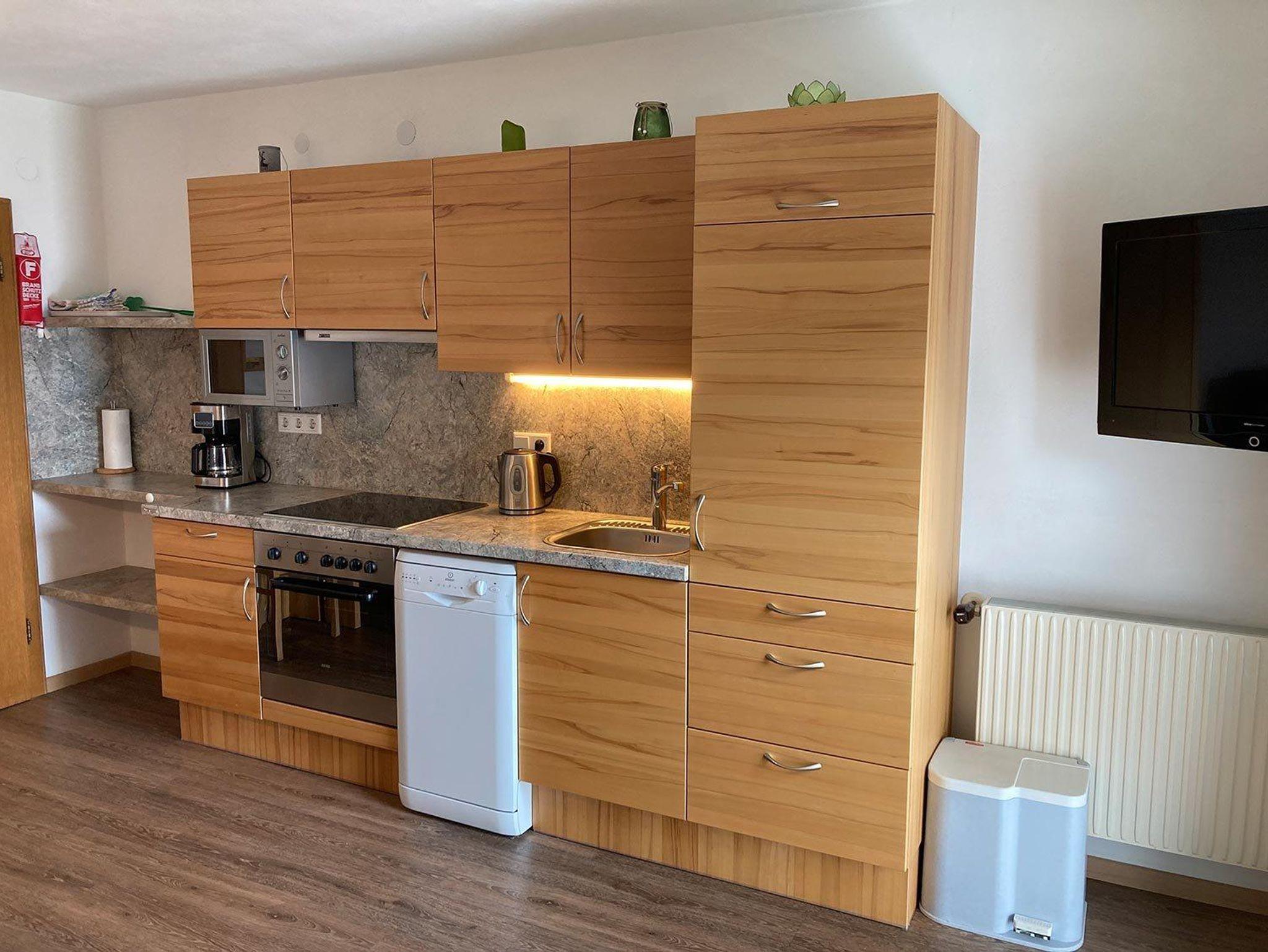 Appartement Birnhorn für 2-5 Personen besteht aus einer großen Wohnküche vollständig eingerichtet mit Geschirrspüler, Kaffeemaschine, Wasserkocher, Mikrowelle usw.; gemütliche Doppelcouch, große Sitzecke, Sat TV; Radio; Außerdem: 1 neues Doppelzimmer, 1neues Dreibettzimmer mit Waschbecken, beide Zimmer mit Holzboden, Dusche/WC separat; Fön; großer Balkon mit herrlichem Blick auf die Leoganger Steinberge;Gratis Wlan.NEU: Waschmaschine für unsere Gäste.