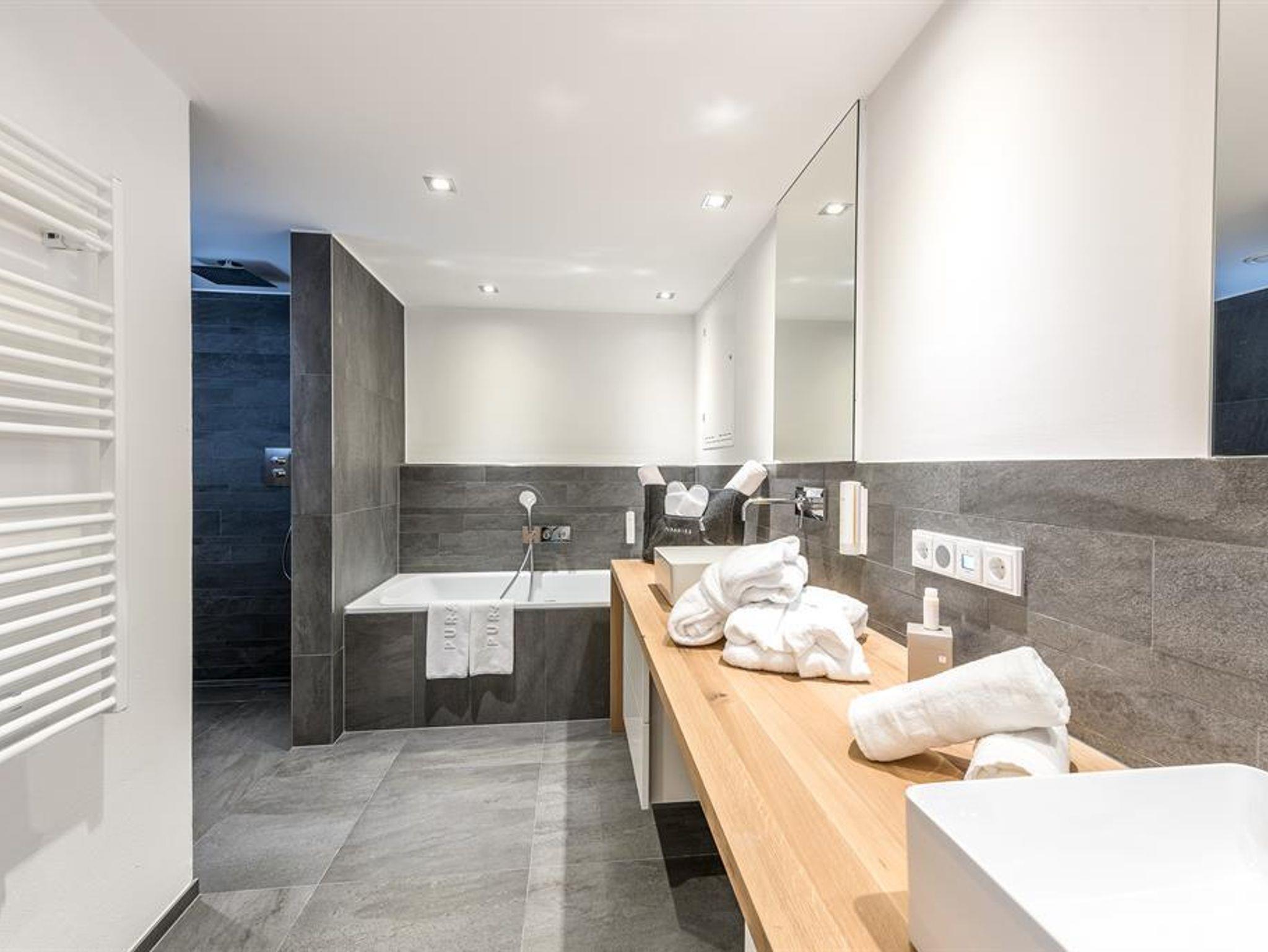 Nur in der PURADIES Premium Suite werden Gemütlichkeit, Gemeinsamkeit und Harmonie des Familienlebens sowie die wohlverdiente Zweisamkeit des Elternseins so vereint. Jeder Ihrer Liebsten findet in dem entspannenden und beruhigenden Ambiente seinen Rückzugsort. Auf der großen Terasse genießen Sie den atemberaubenden Blick auf die umliegende Bergwelt des PURADIES. Atmen Sie tief durch, entschleunigen Sie sich und saugen Sie die Energie in sich auf. Mit einem gemeinsamen Bad oder einer erfrischenden Erlebnisdusche lassen sich auch die letzten Spuren des Alltages wegspülen. Erleben Sie diese traumhafte Suite in Eiche und Altholz mit Wohn- und Schlafzimmer, Box-Spring-Bett, großem Badezimmer mit Badewanne, Dusche und großem Waschtisch.