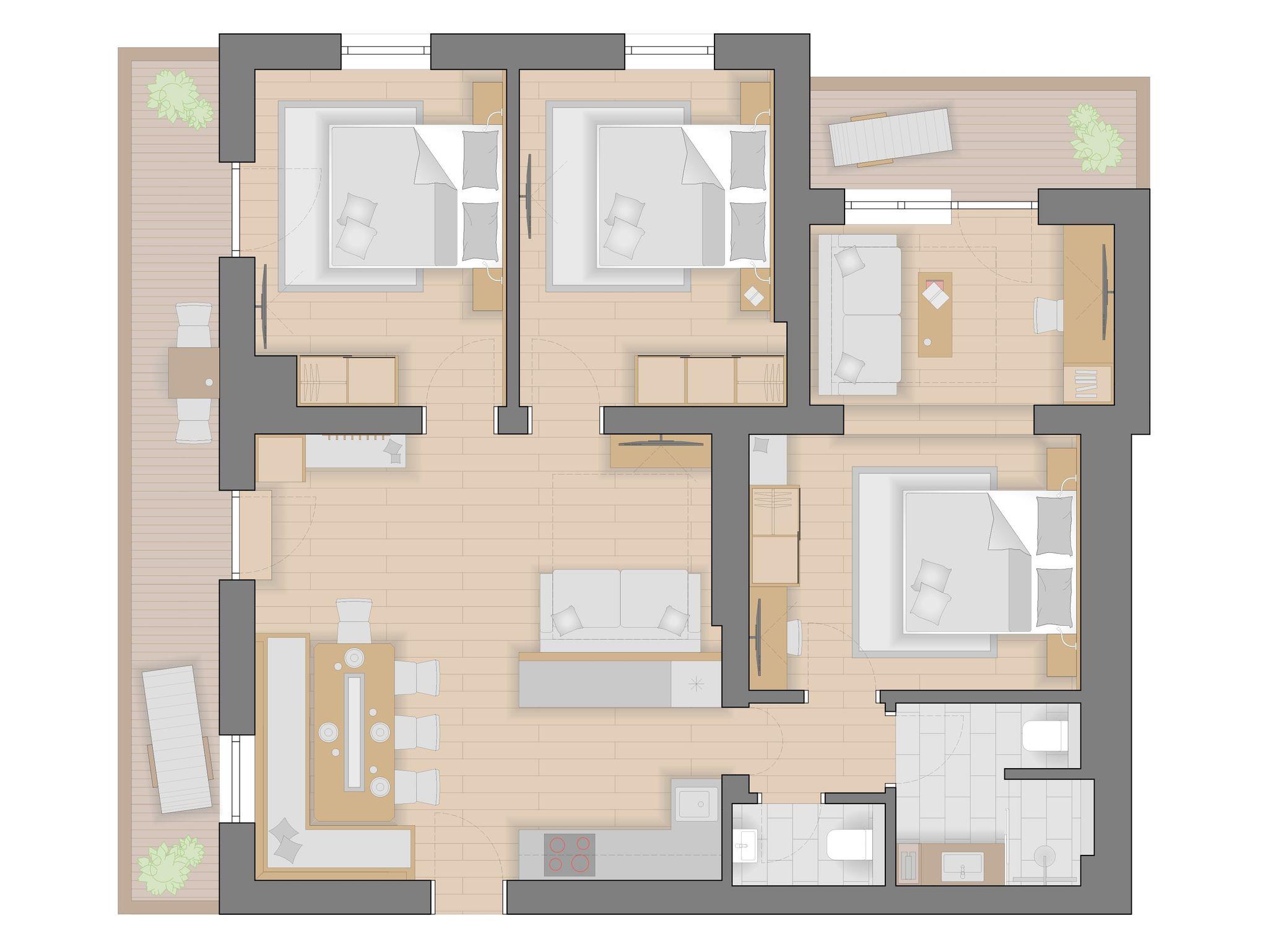 Typ: App.Sonnkogel: Genießen Sie gemütliche Stunden in dem neu errichteten Appartement. Heimisches Holz verleiht den Zimmern eine gemütliche Atmosphäre. Unser neues Appartement ist mit einer gut ausgestatteten Wohnküche, Kabel-TV, Safe, WLAN, 3 getrennte Schlafzimmer, Ausziehsofa, Dusche sind WC getrennt, einen Balkon mit Blick ins Tal und einen Balkon mit Blick auf den Erlebnisberg Asitz ausgestattet.