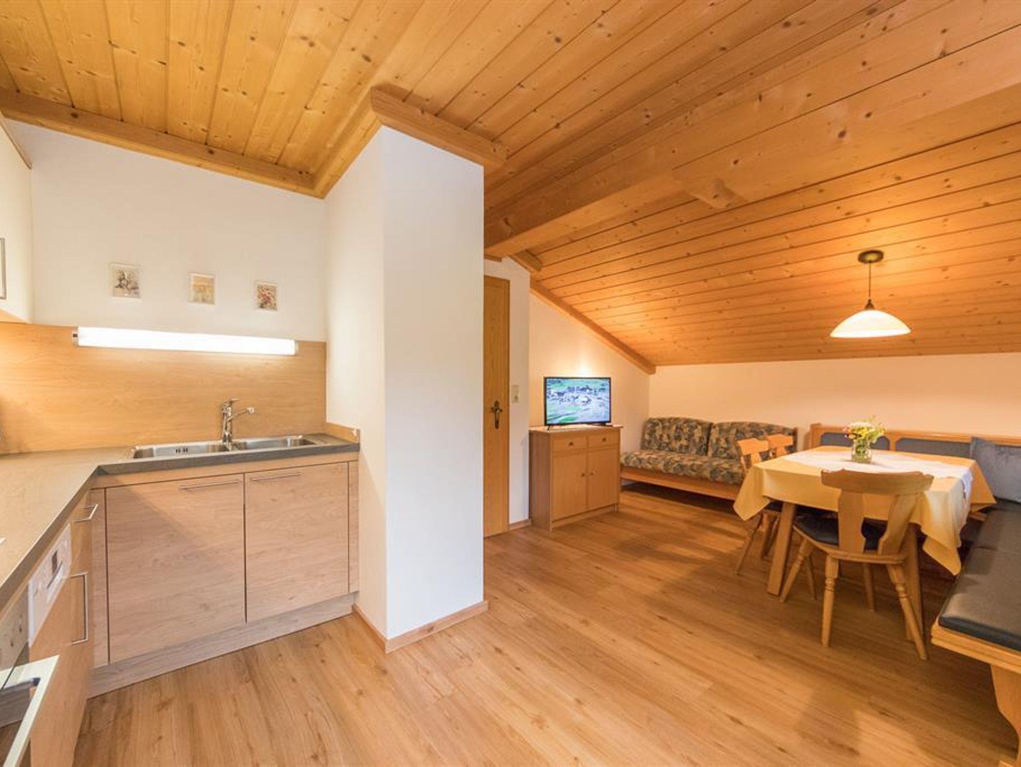 Die Ferienwohnung im ersten Stock verfügt über eine große Terrasse, Wohnküche, Bad, 2 Schlafzimmer, separate Toilette, Balkon, 2 Schlafzimmer für 1-6 Personen.
