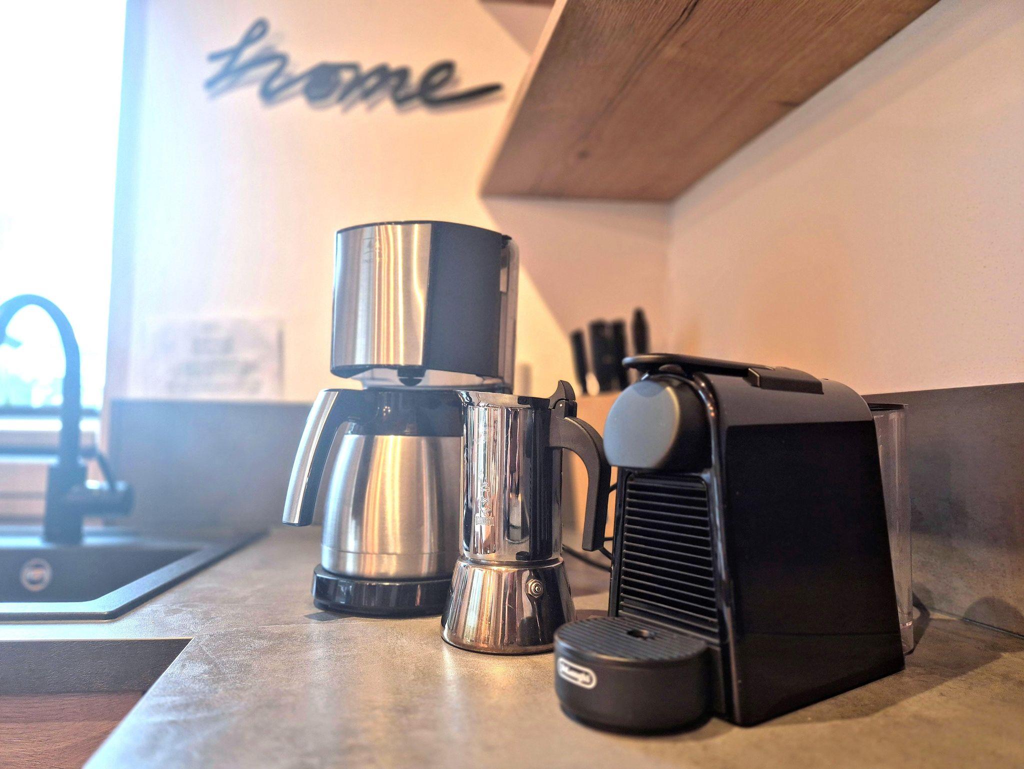 Versperrbarer Bikeraum im Keller mit belüftetem Schuh- und Kleidungstrockner. Waschmaschine und Wäschetrockner kostenlos verwendbar. Superschnelles WLAN. Alle Ferienwohnungen mit Nespresso-Kaffeemaschine, Filterkaffemaschine oder italienischer Espressomaschine am Herd.
