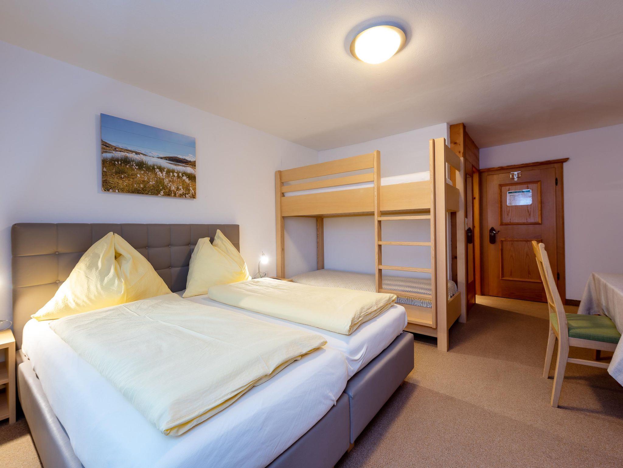 Ausstattung: 1 Doppelbett, 1 Stockbett, Dusche/WC/Fön, Kabel-TV & Radio, W-Lan