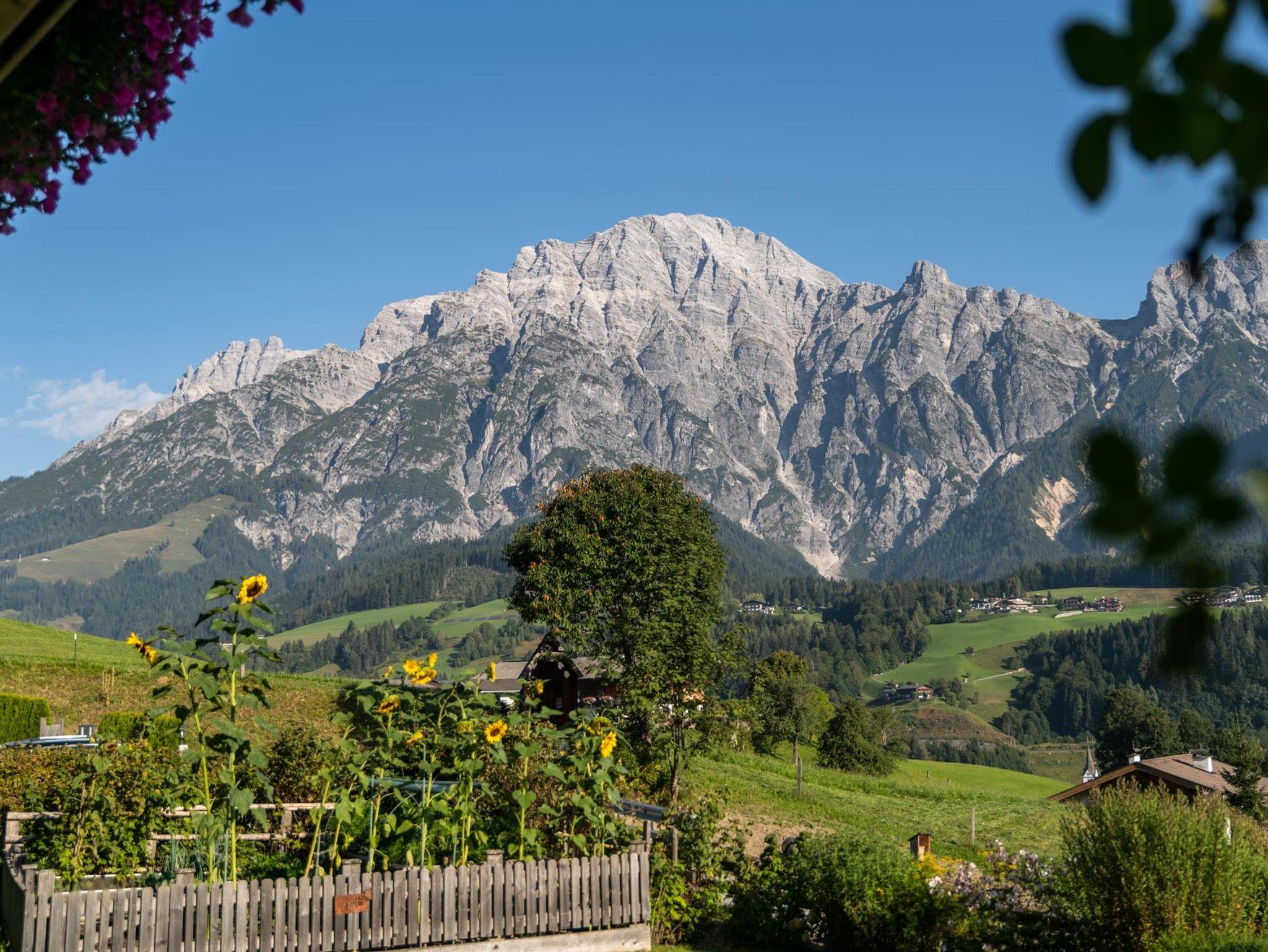 Familienfreundliches Haus der Kategorie 4 Edelweiß liegt in einer ruhigen und erholsamen Gegend mit nur fünf Gehminuten vom Leoganger Ortszentrum entfernt. Zudem gewährt die Lage einen traumhaften Blick auf die Leoganger Steinberge sowie das Steinerne Meer in Saalfelden.