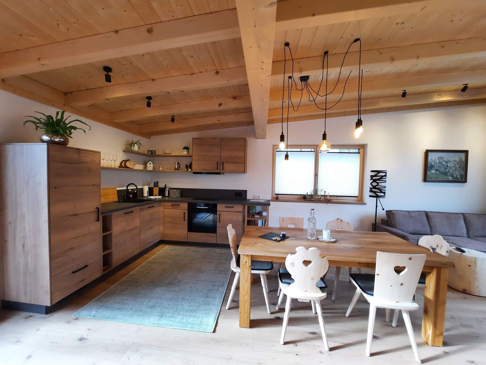 Das Natur Loft ZirbenWald hat 3 Schlafzimmer, einen großzügigen Wohn-/Küchenraum im Obergeschoß. Modern aber doch im alpinen Stil. Im Haus gibt es nur zwei Lofts. 83 m2 gemütliches Ambiente auf 2 Etagen. Viel natürliches Holz, Betten aus massiver Zirbe und ein perfekter Ausblick auf die Leogangner Steinberge. Gemütliches Bad.