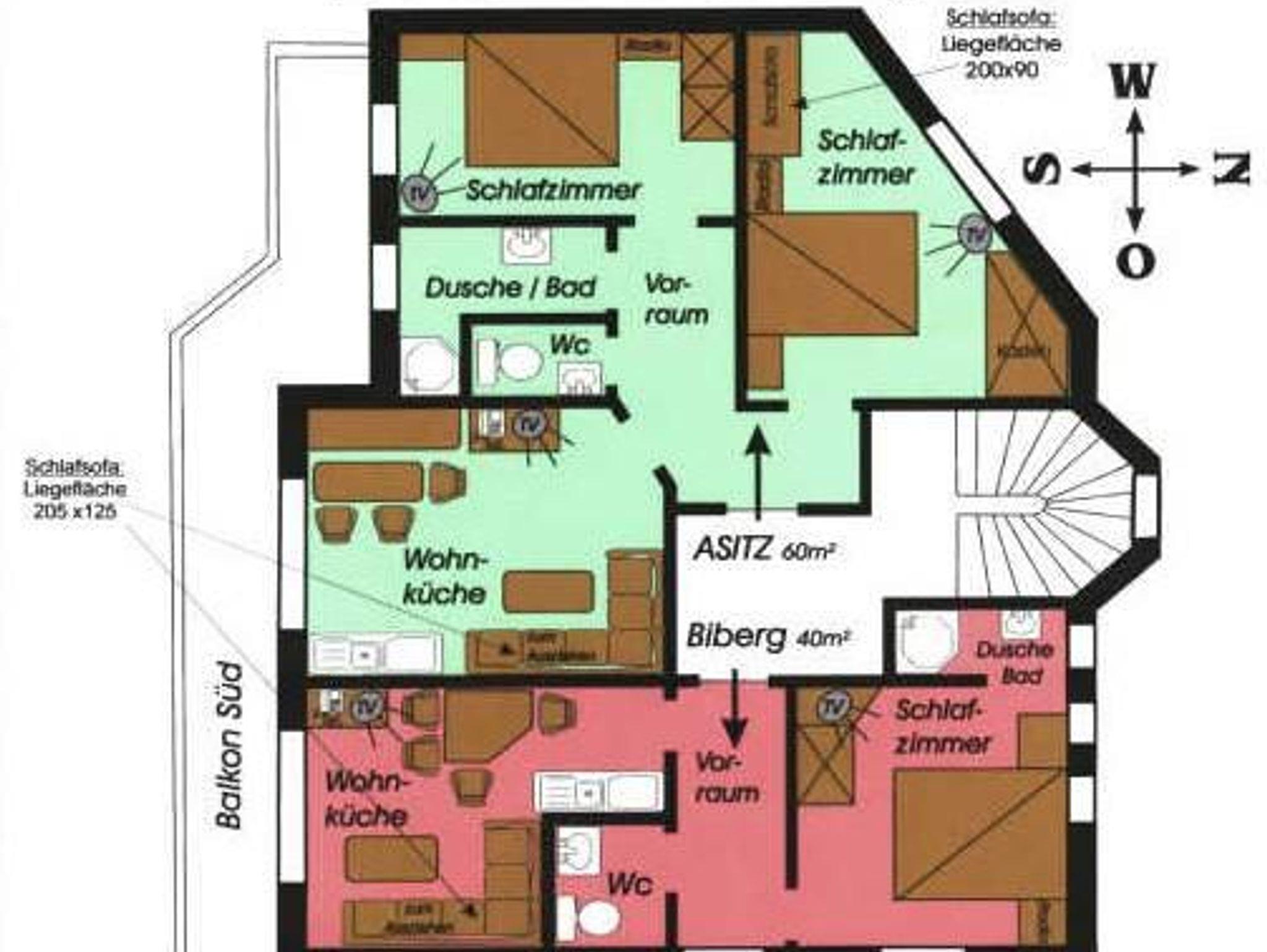 Ferienwohnung ASITZ ( 60m²) Schöne Ferienwohnung für 2 bis max. 6 Personen, Wohnküche mit großem Sofa(Schlaffläche 200cm x 78cm), Schlafzimmer für 3 Personen, Schlafzimmer für 2 Personen, Bad/Dusche, separate Toilette, Vorraum. in der Wohnküche und in jedem Schlafzimmer Smart-Flat-TV, Wlan, super Preis-Leistungsverhältnis!