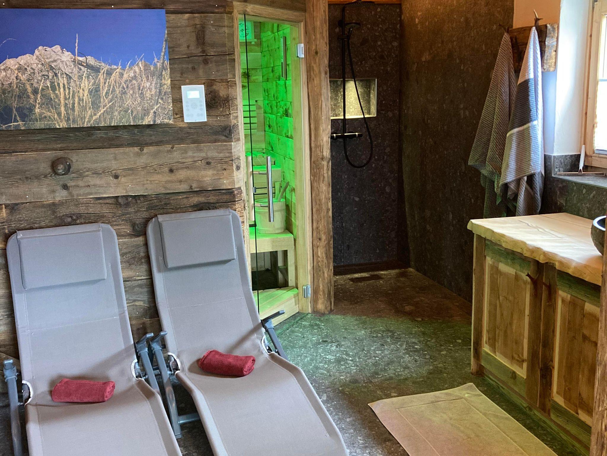 Nach einem aktiven Tag in den Bergen können Sie in die wohltuende Wärme der Sauna eintauchen oder es sich auf der Terrasse mit Liegestühlen gemütlich machen. Für Familien bieten wir ein Gitterbett / Babybett an und auch Haustiere (Aufpreis) sind willkommen, damit niemand ausgeschlossen wird.