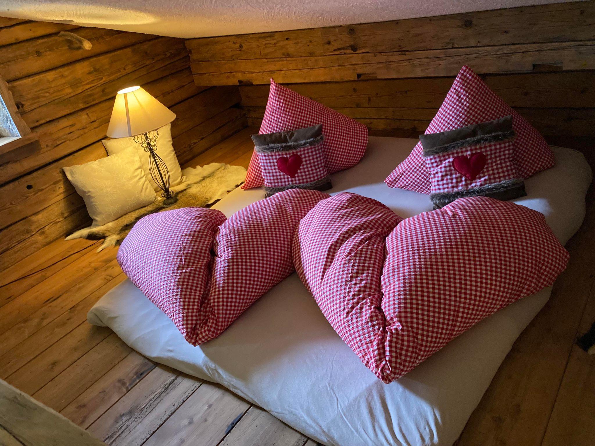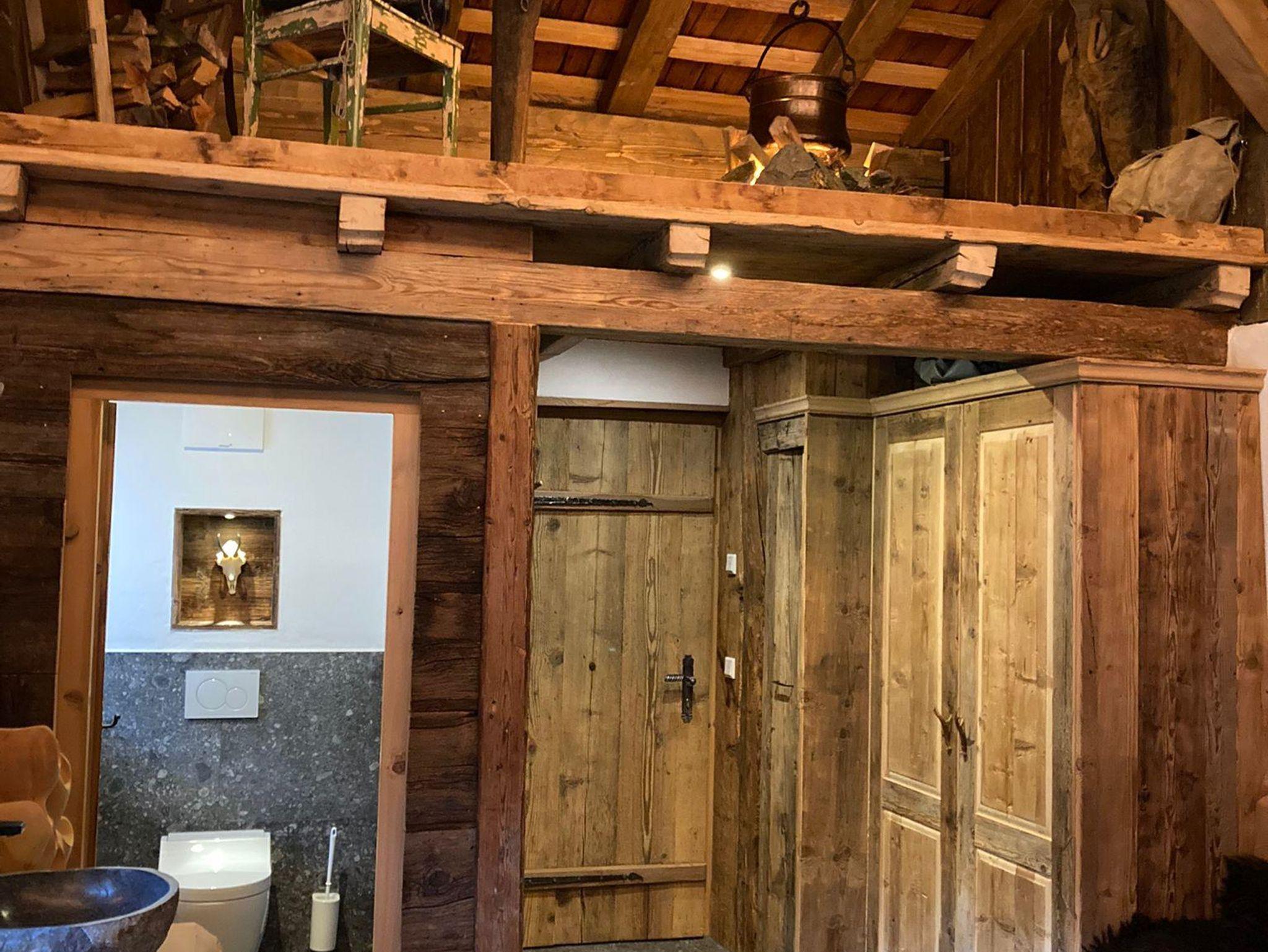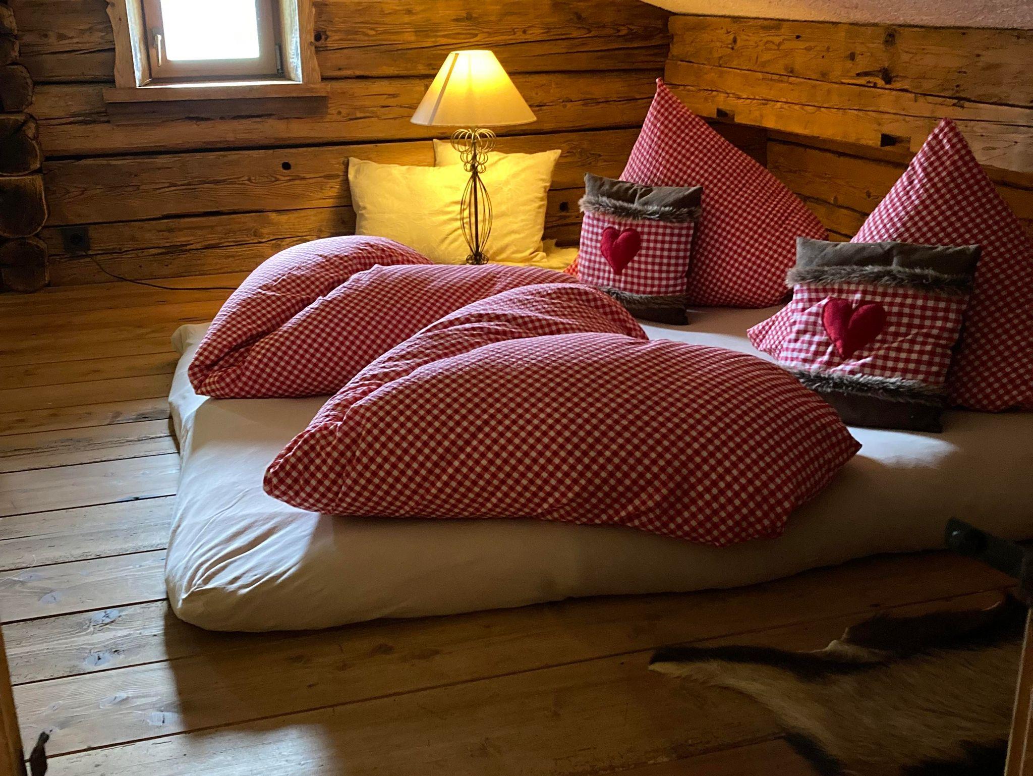 Das Almchalet bietet Platz für bis zu 8 Personen. Es besteht aus zwei Schlafzimmern, beide mit Doppelbett. Eines davon verfügt zusätzlich über ein Etagenbett für 4 Personen. Eine Küche mit Geschirrspüler und Herd sowie ein Wohnraum mit Kachelofen und Couch sind ebenfalls vorhanden. Das Highlight bietet der eigene Saunabereich mit seperater Dusche und WC.