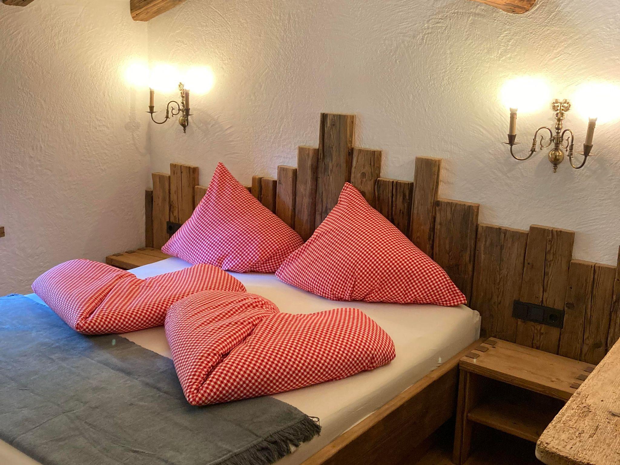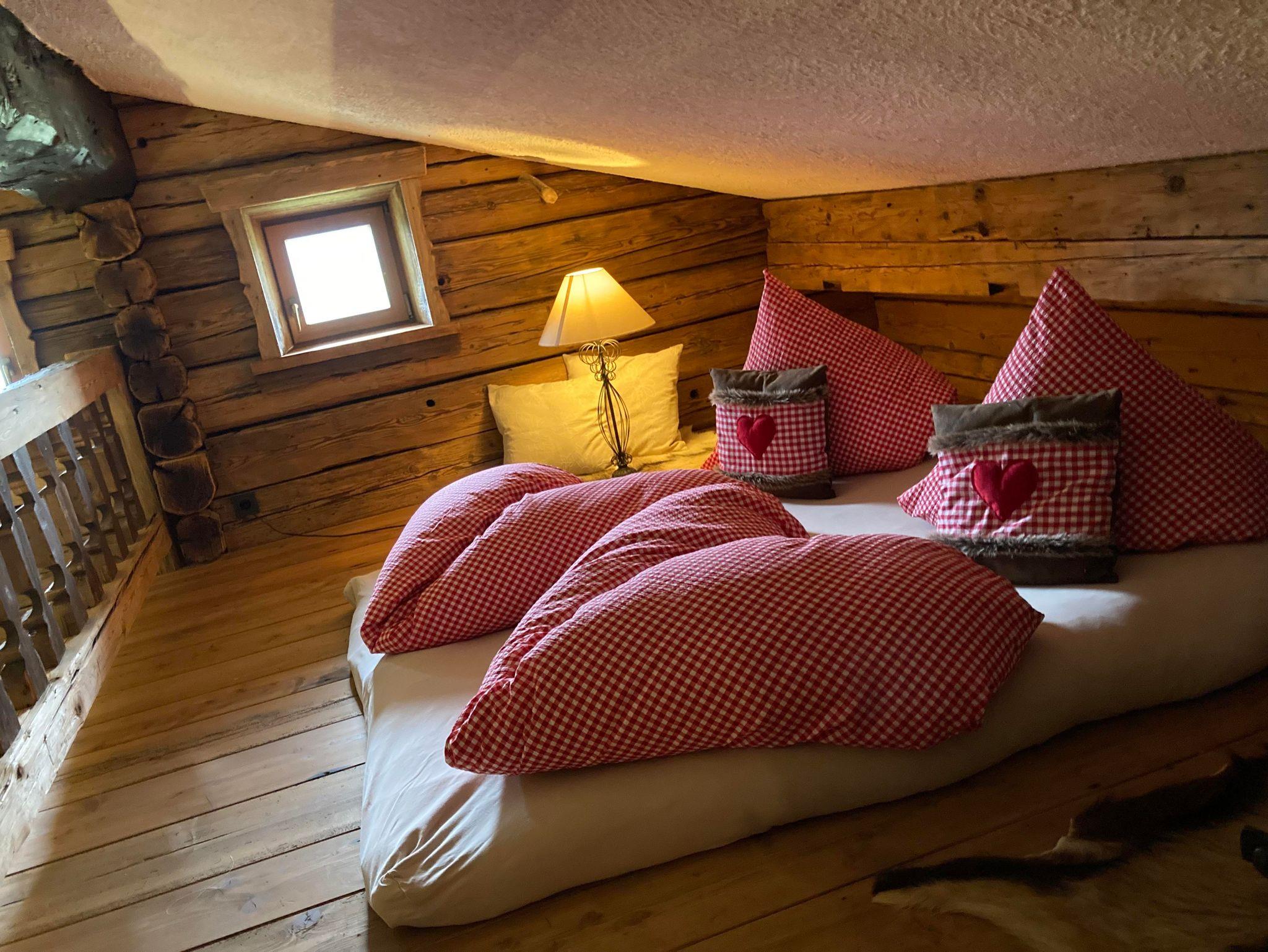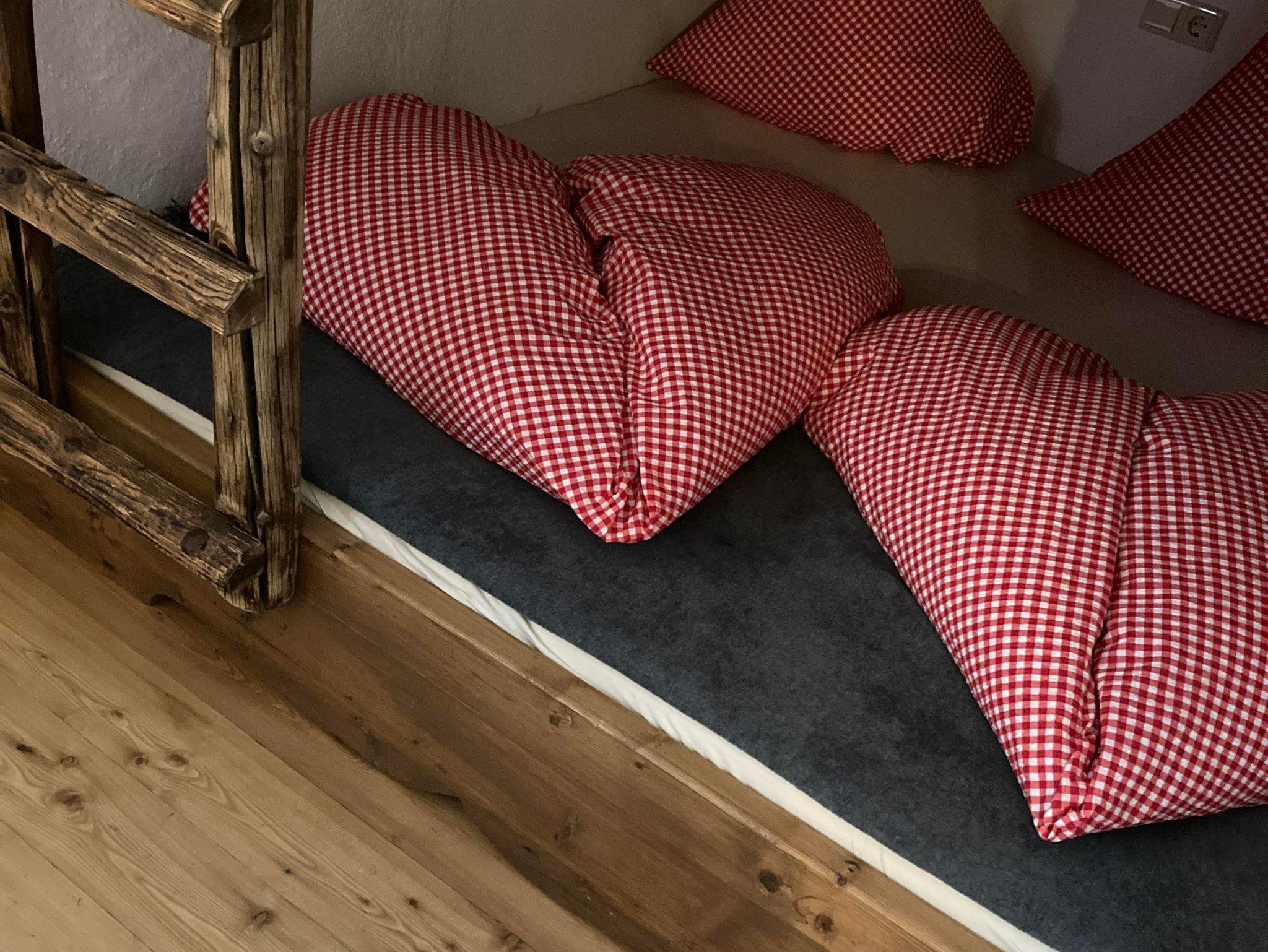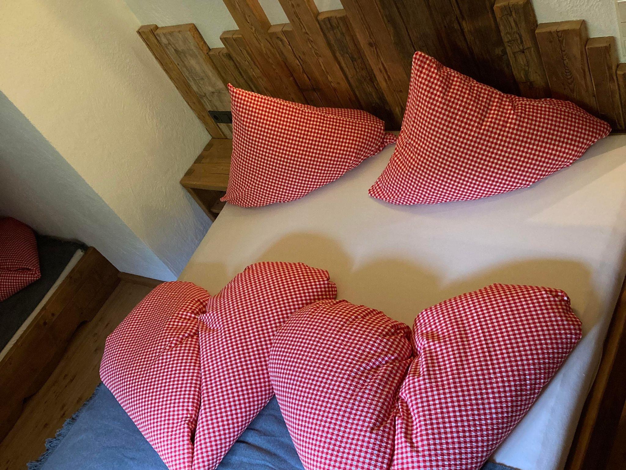 Das Almchalet bietet Platz für bis zu 8 Personen. Es besteht aus zwei Schlafzimmern, beide mit Doppelbett. Eines davon verfügt zusätzlich über ein Etagenbett für 4 Personen. Eine Küche mit Geschirrspüler und Herd sowie ein Wohnraum mit Kachelofen und Couch sind ebenfalls vorhanden. Das Highlight bietet der eigene Saunabereich mit seperater Dusche und WC.