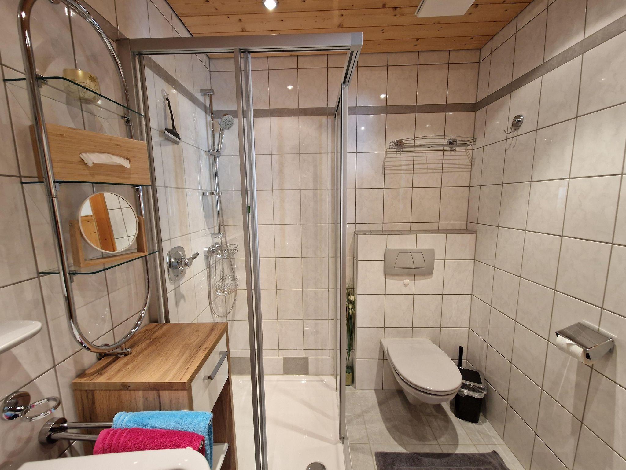 Ebenerdig gelangen Sie zur 45m² Wohnung. Mit eigenem Eingang, Hausgang (Diele) mit Garderobe und Skiabstellplatz-Skischuhtrockenplatz, Vorraum, 1 großer Wohn-Schlafraum mit gemütlichem Ercker und Küche, DU/WC. Sonnen am windgeschützten - ausblickfreien Vorplatz. Supermarkt M-Preis/Bäckerei und Bushaltestelle (gratis Skibus direkt zur Gondel) befinden sich in 80 m Entfernung. Es sind nur wenige Minuten ins Zentrum und zu den Skiliften. Für Langläufer befindet sich der Loipeneinstieg direkt beim Haus.