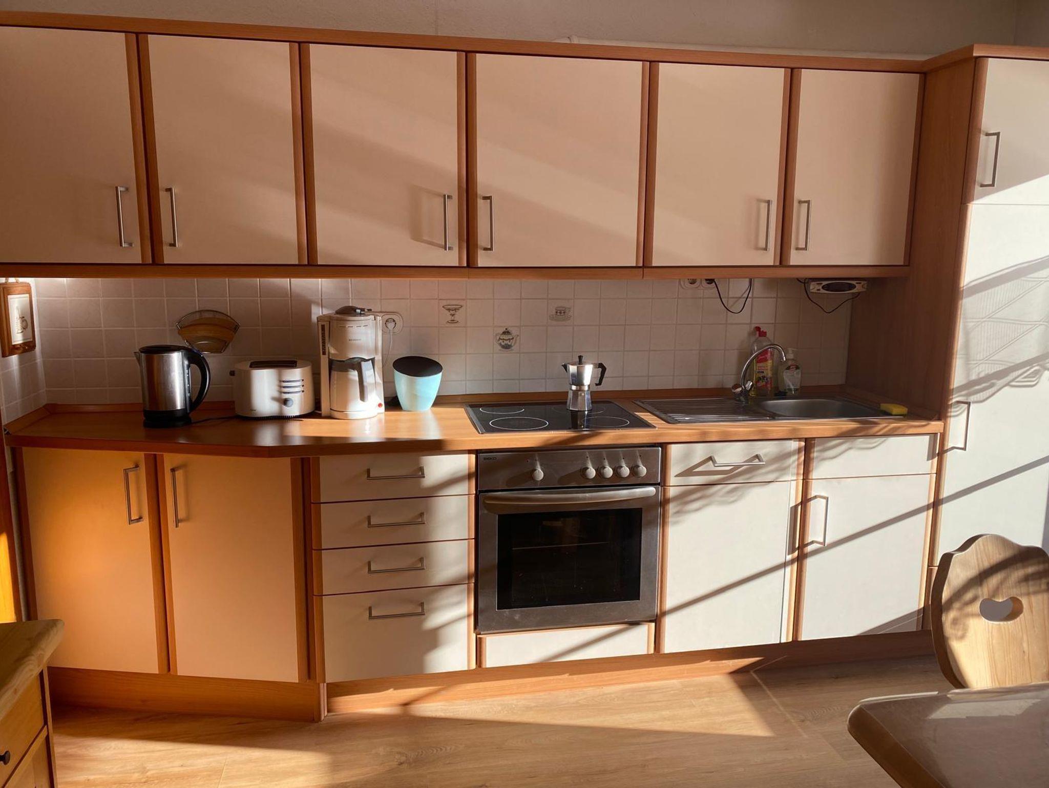 • Küche mit einer gemütlichen Sitzecke.