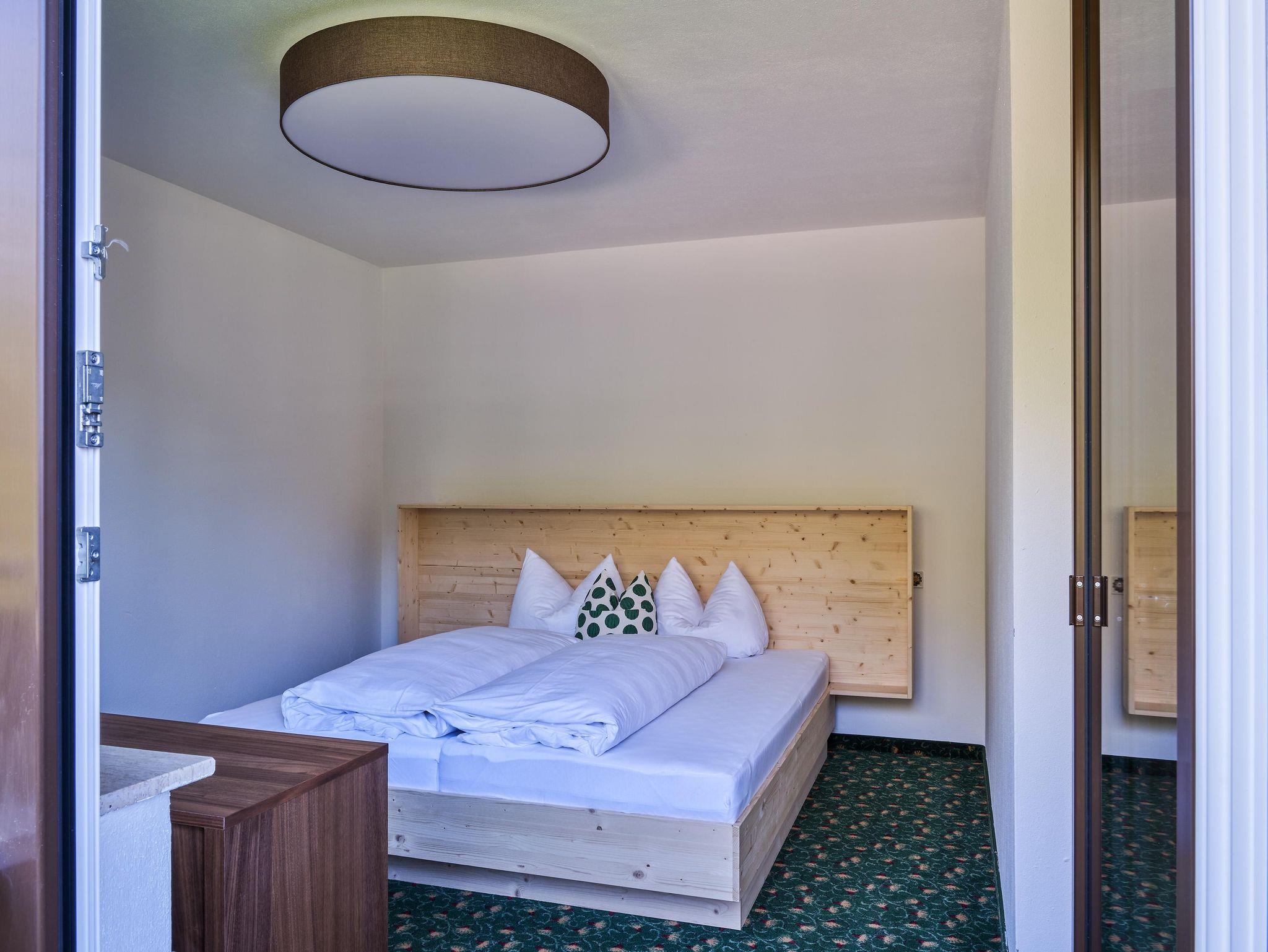 70 m2 große Apartments, verfügen jeweils über 2 abgetrennte Schlafzimmer, 1 Wohnraum mit Ausziehcouch und 3 Bäder. Diese Apartments bieten viel Platz und Privatsphäre für jeden, sowie einen großzügigen Balkon mit Wald- und Wiesenaussicht, sowie Blick auf die Berge.