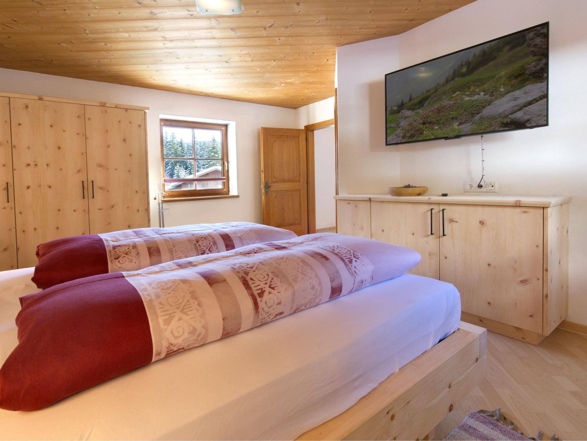 Das Besondere an unserer renovierten Wohnung 2 ist das Schlafzimmer aus Zirbenmassivholz. Diese einheimische, sehr widerstandsfähige Baumart des Hochgebirges beeinflusst sowohl das Raumklima wie auch das Wohlbefinden der Bewohner positiv.