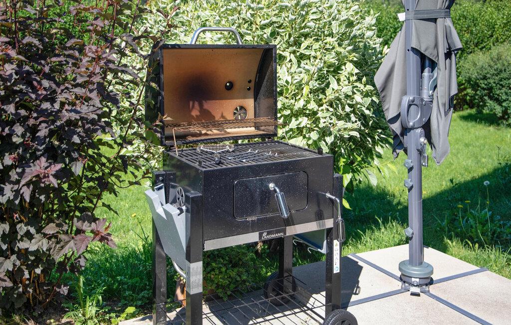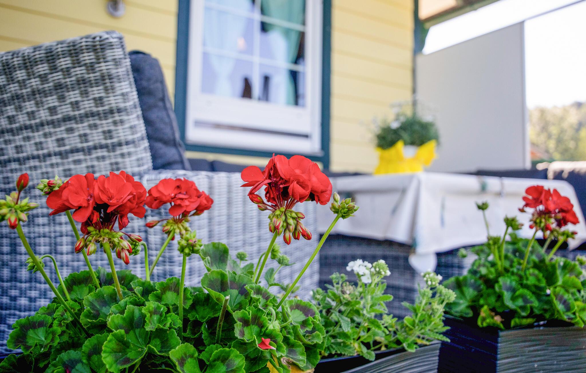 Den grønne have med grillplads er ideel til hyggelige aftener udendørs. Slap af på den hyggelige og overdækkede terrasse, og se børnene lege i haven.
