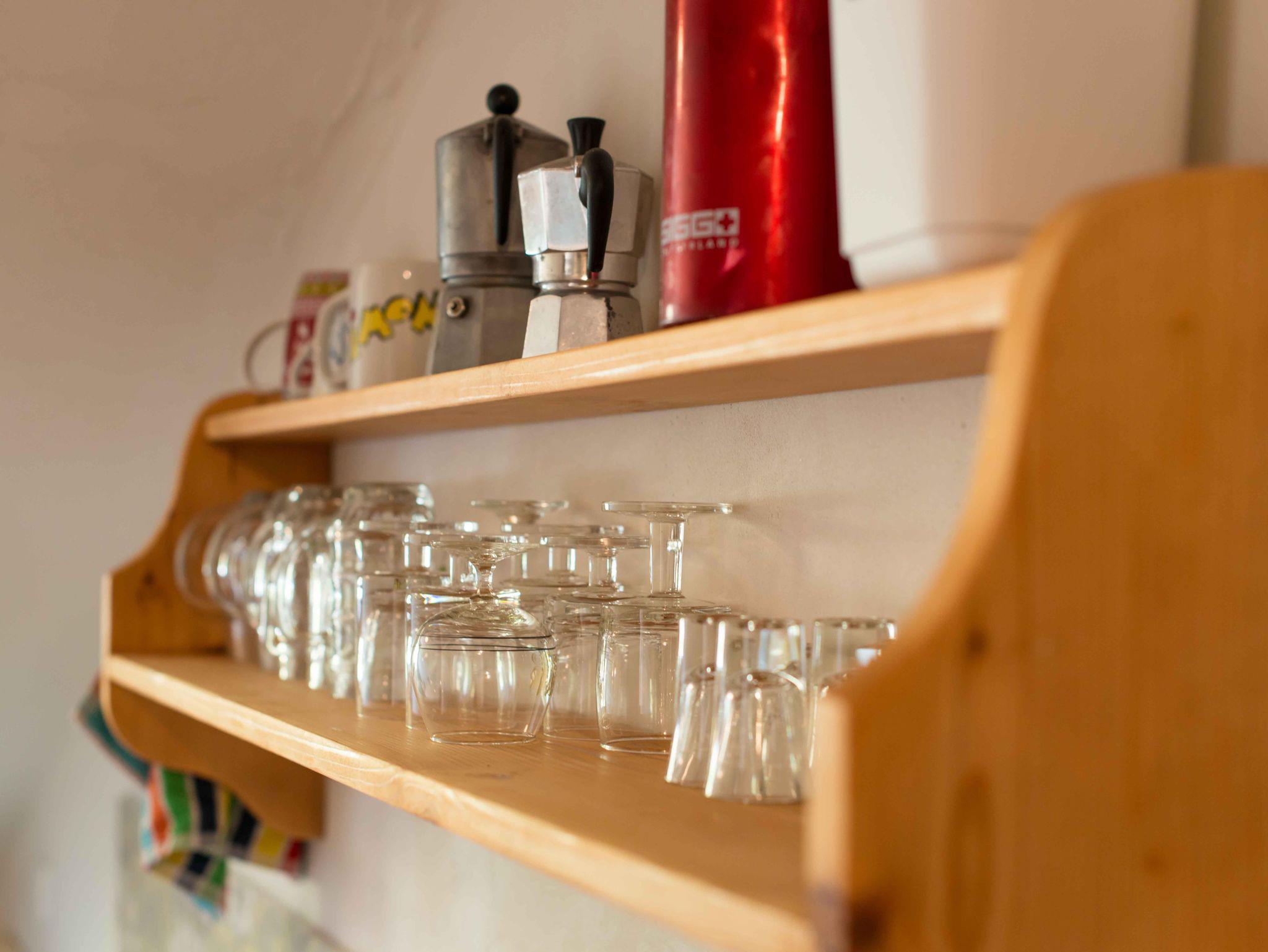Der wilde Stier ist eine zwei Zimmer Wohnung mit Wohnküche und einem kleinen Badezimmer. Zwei Doppelbetten und eine Schlafcouch bieten Platz für 5 Personen.