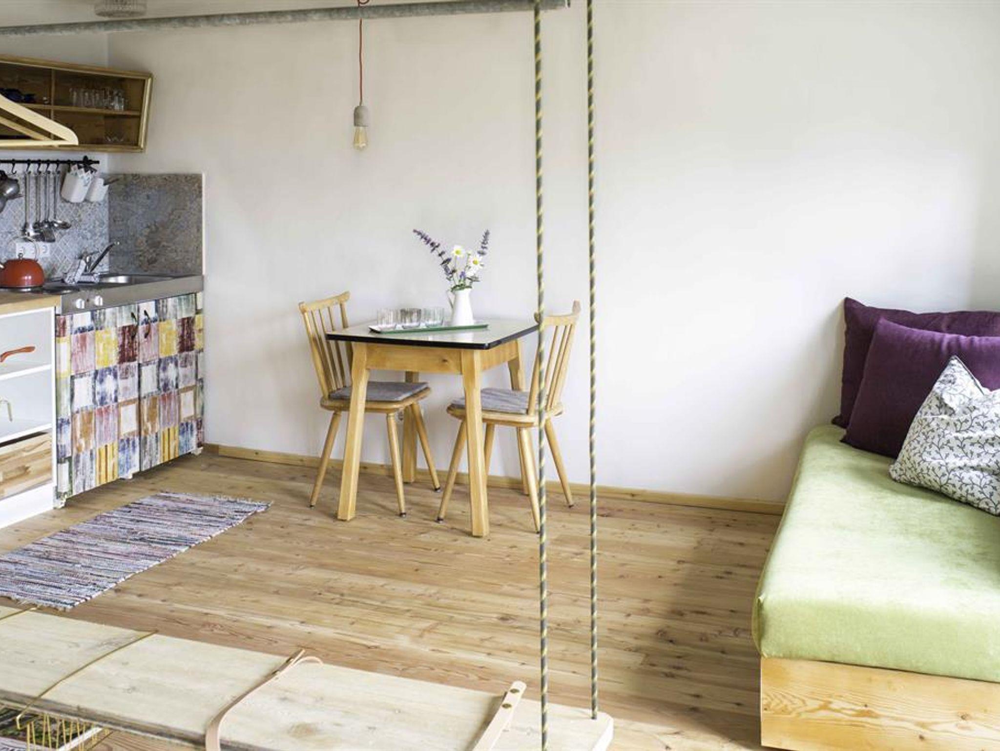 Das Dangelloch ist ein Garçonnière bestehend aus einem Zimmer mit Sitz- & Kochgelegenheit und einem Badezimmer. Es ist perfekt für junge Familien mit Kleinkind. Das Doppelbett und die Schlafcouch bieten Platz für 3 Personen.