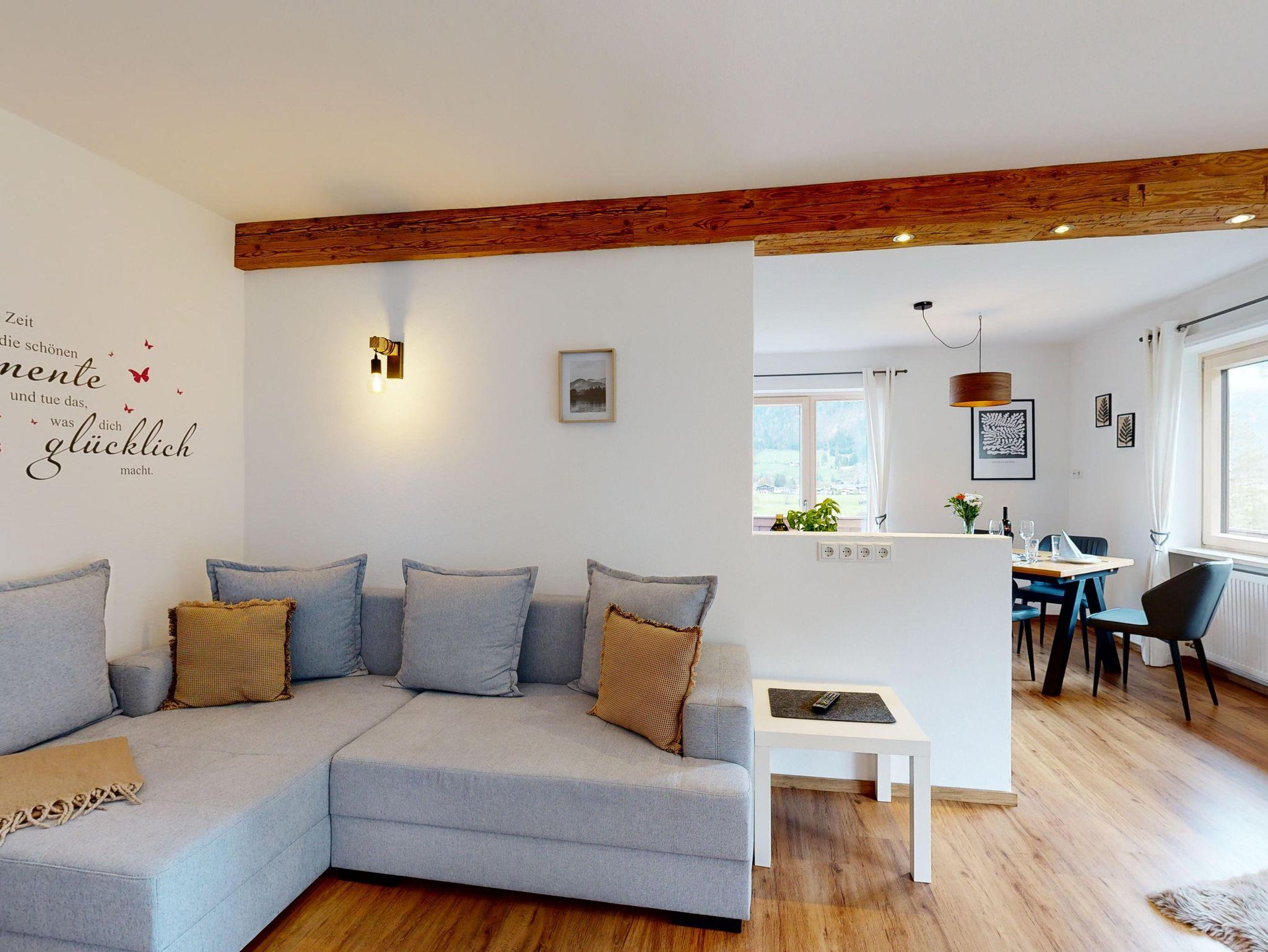 Die Ferienwohnung Saalachtal bietet Euch auf ca. 65m² Platz zum Erholen und Relaxen. Von der Küche und vom Wohnzimmer aus habt Ihr direkten Blick auf die Reiter und Loferer Steinberge (Reifhorn) - Ihr könnt in vollen Zügen die unmittelbare Natur genießen.