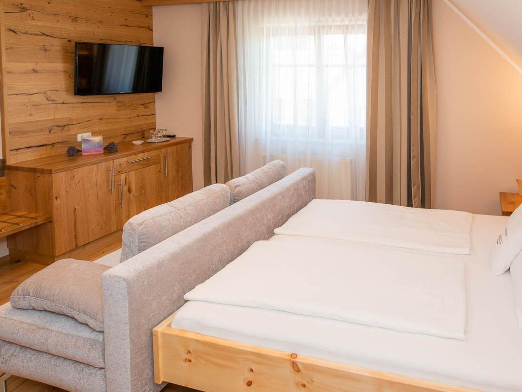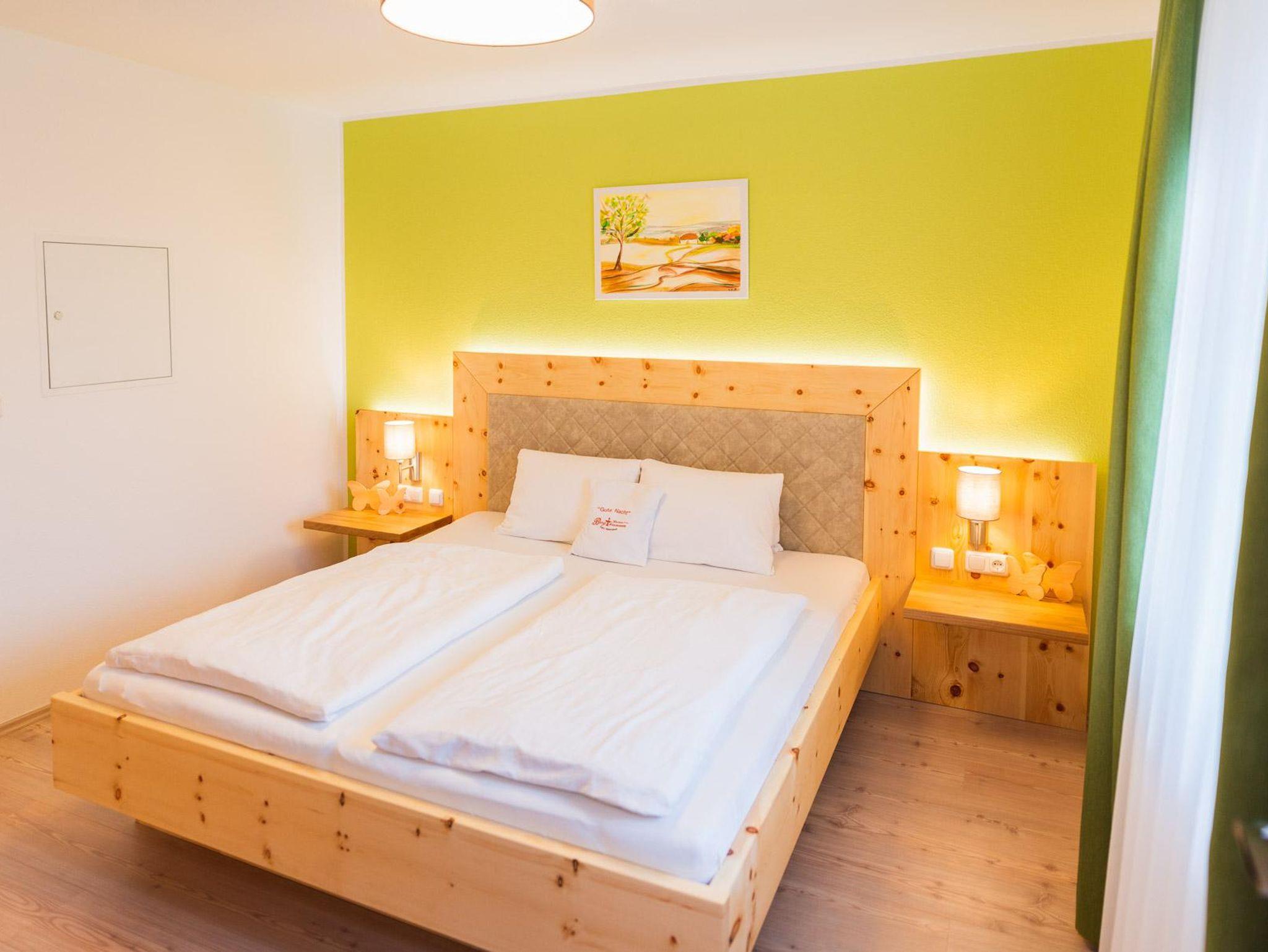 Das gemütliche, neu eingerichtete Schlafzimmer ist jetzt mit einem Zirbenbett und zusätzlich mit SAT-TV ausgestattet.