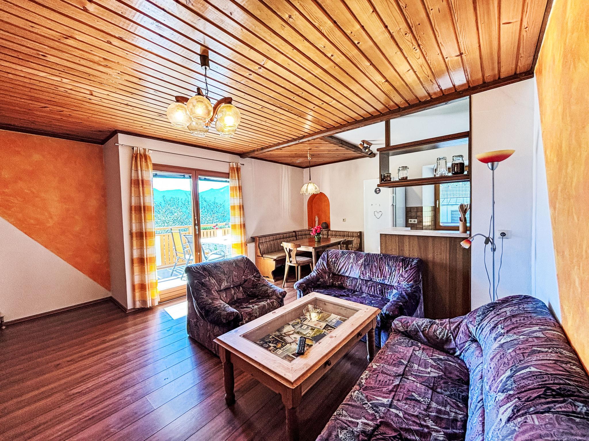 "Hochstuhlblick", 3-room apartment 80 m2 on 1st floor. Practical and cosy furnishings: living/dining room with dining table and digital TV. Exit to the balcony. 1 room with 1 bed and 1 x 2 bunk beds. 1 double bedroom. Open kitchen (4 hot plates, oven, dishwasher, toaster, kettle, freezer, electric coffee machine). Bath/shower, sep. WC. Heating. Parquet floors. Balcony. Balcony furniture. Very beautiful panoramic view of the valley. Facilities: washing machine. Internet (WiFi, free). Please note: non-smokers only.