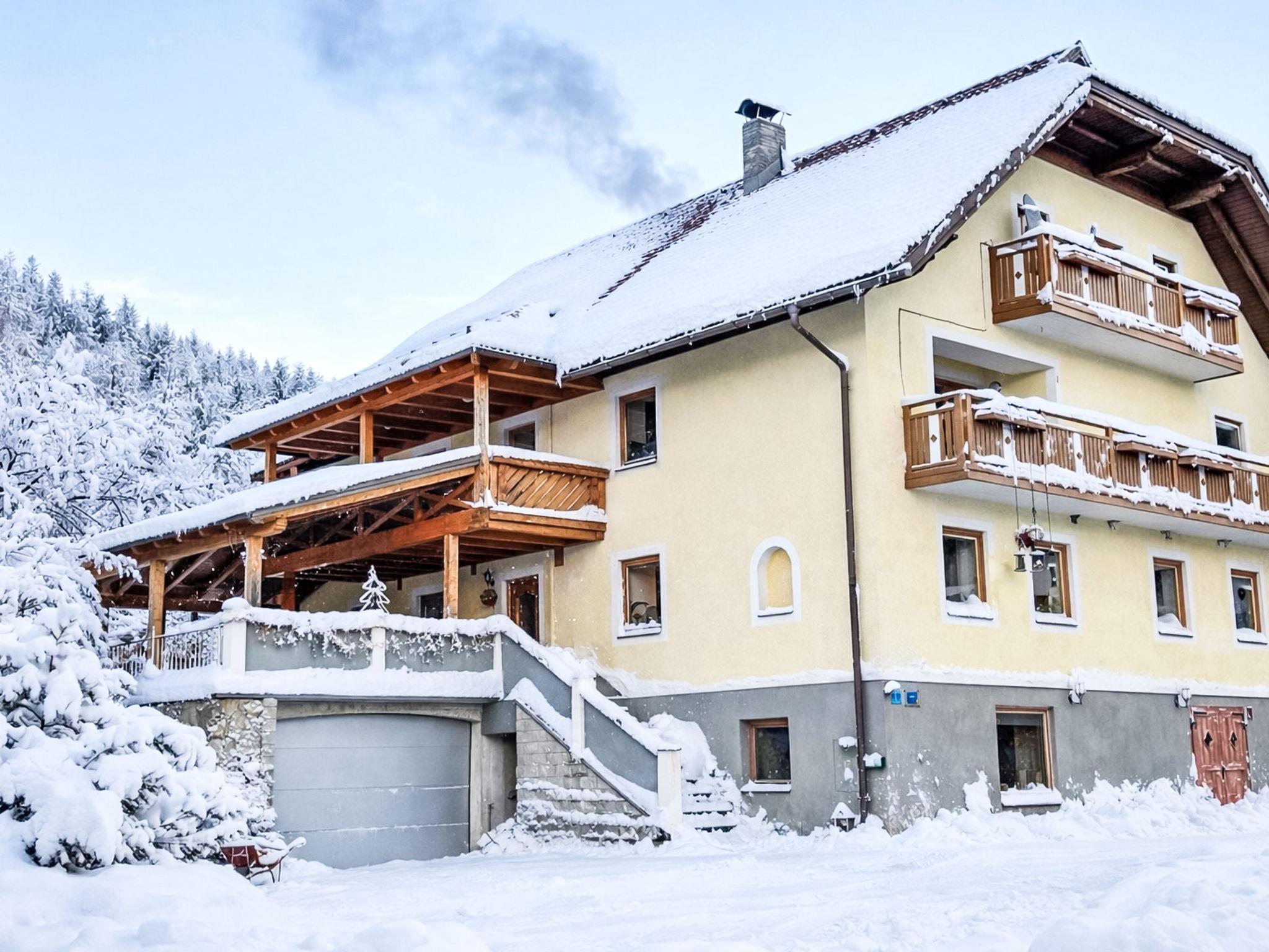 "Mittagskogel", 3-room apartment 80 m2 on 1st floor. Practical and cosy furnishings: living/dining room with dining table and digital TV. Exit to the balcony. 2 double bedrooms. Open kitchen (oven, dishwasher, 4 ceramic glass hob hotplates, toaster, kettle, freezer, electric coffee machine). Bath/shower, sep. WC. Wood heating. Parquet floors. Large balcony 18 m2, west facing position. Balcony furniture. View of the mountains. Facilities: washing machine. Internet (WiFi). Please note: non-smokers only.