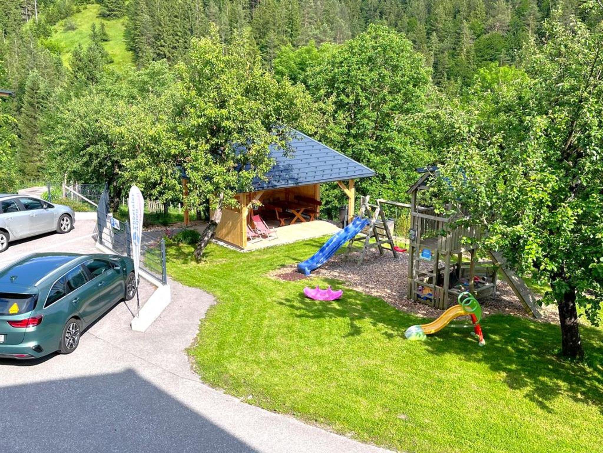 Eigener Gästegarten mit überdachter Sitzmöglichkeit, für unsere kleinen Gäste gibt es außerdem einen Spielplatz im Freien mit Schaukeln, großem Trampolin, Kinderfahrzeugen, Sandkiste, Parkplatz vorm Haus,...