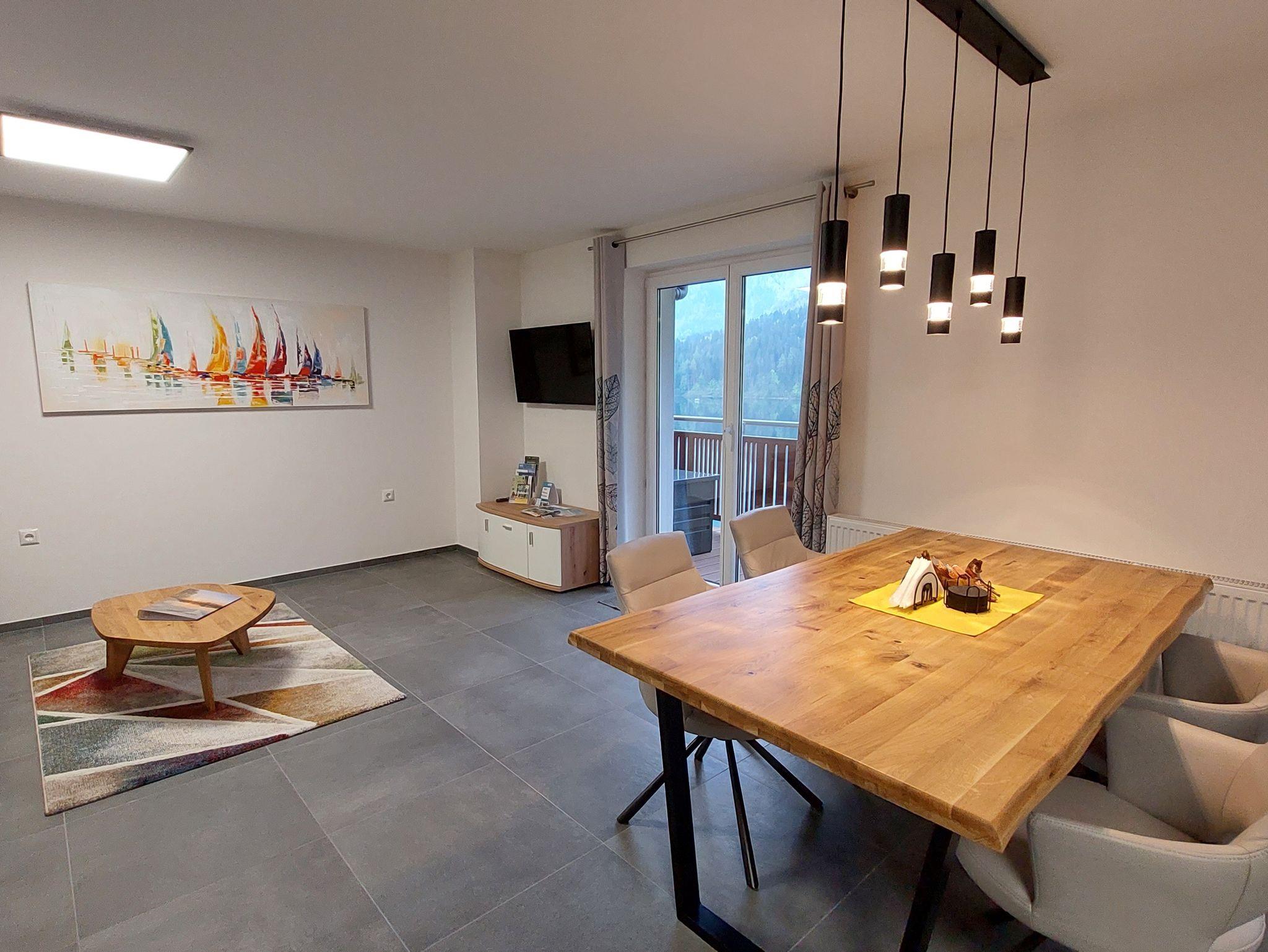 Die Ferienwohnung 'Seeblick' wurde 2022/23 neu renoviert und bietet Platz für bis zu 6 Personen. Sie verfügt über einen Vorraum mit Garderobe, einer komplett ausgestatteten Küche im Ess-Wohnzimmer (mit Schlafcouch), 2 Schlafzimmer (eines mit einem Doppelbett - das zweite mit zwei Einzelbetten) und einem Bad mit WC.