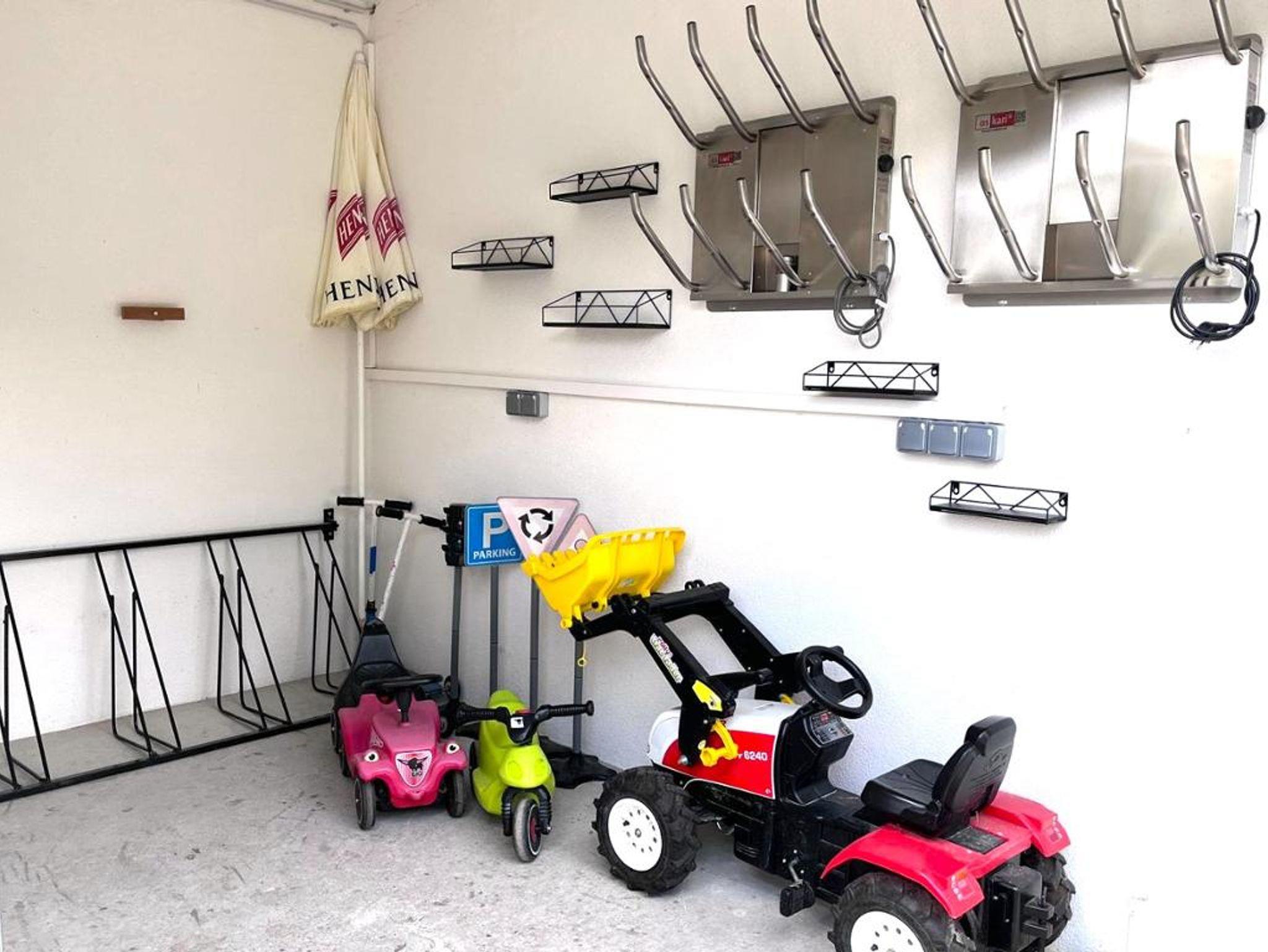 Eigener Gästegarten mit überdachter Sitzmöglichkeit, für unsere kleinen Gäste gibt es außerdem einen Spielplatz im Freien mit Schaukeln, großem Trampolin, Kinderfahrzeugen, Sandkiste, Parkplatz vorm Haus,...