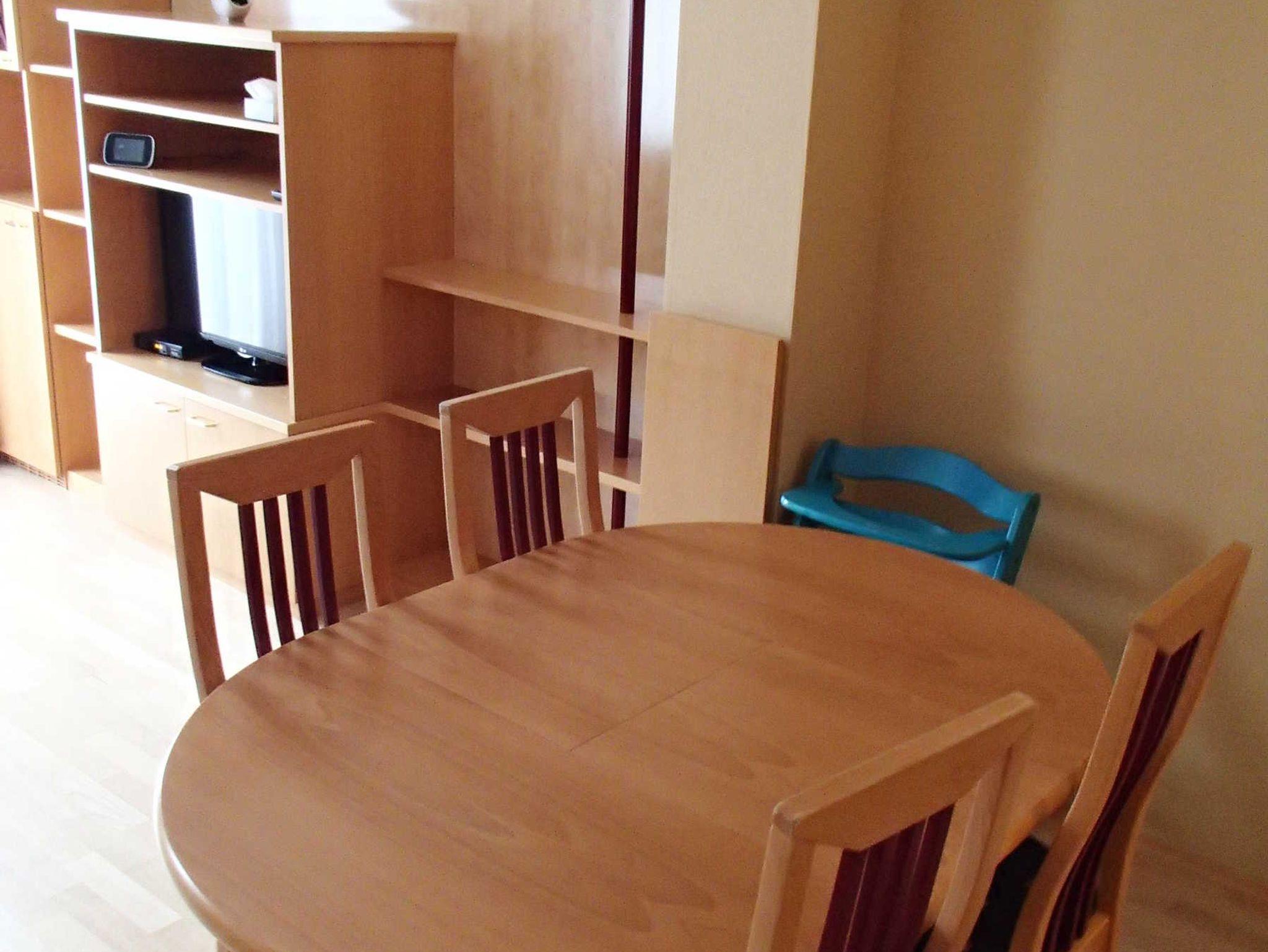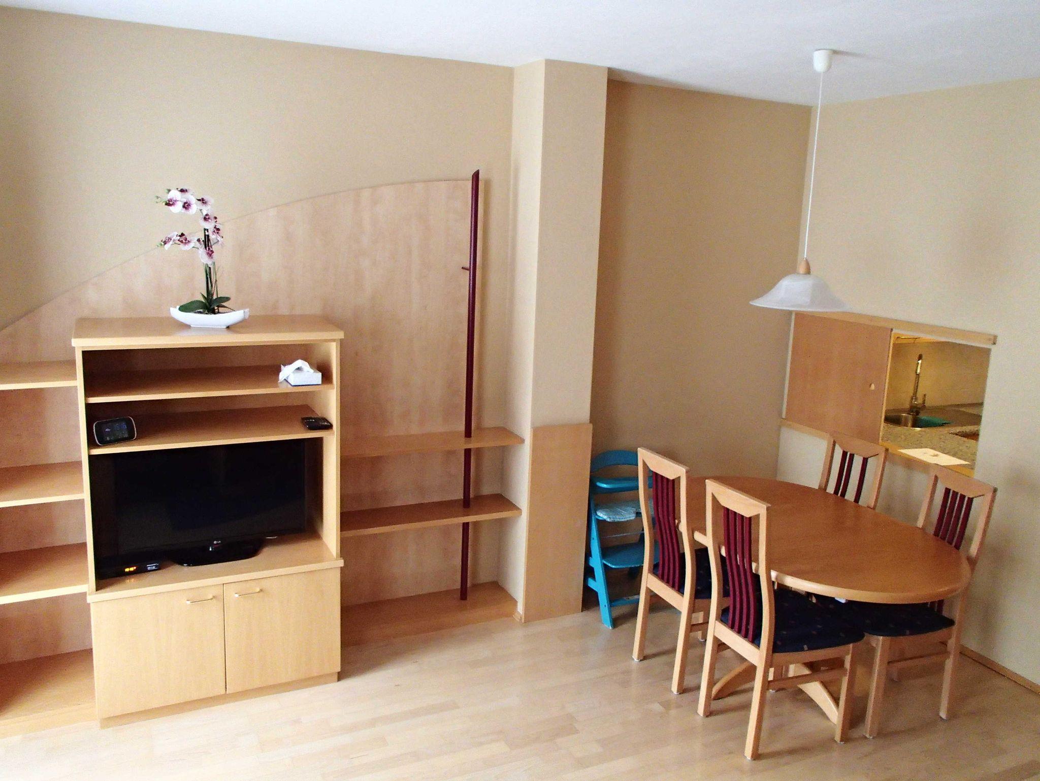 Wohnzimmer mit ausziehbarer Couch (für 2 Personen) und Sat-TV, Esszimmer und voll ausgestattete Küche (Geschirr, Kaffeemaschine, Wasserkocher, Toaster, Mikrowelle, Kühlschrank, Gefrierfach, Backofen, Kochfelder, Spüle) befinden sich im Erdgeschoß, sowie seperates WC und Waschmaschine.