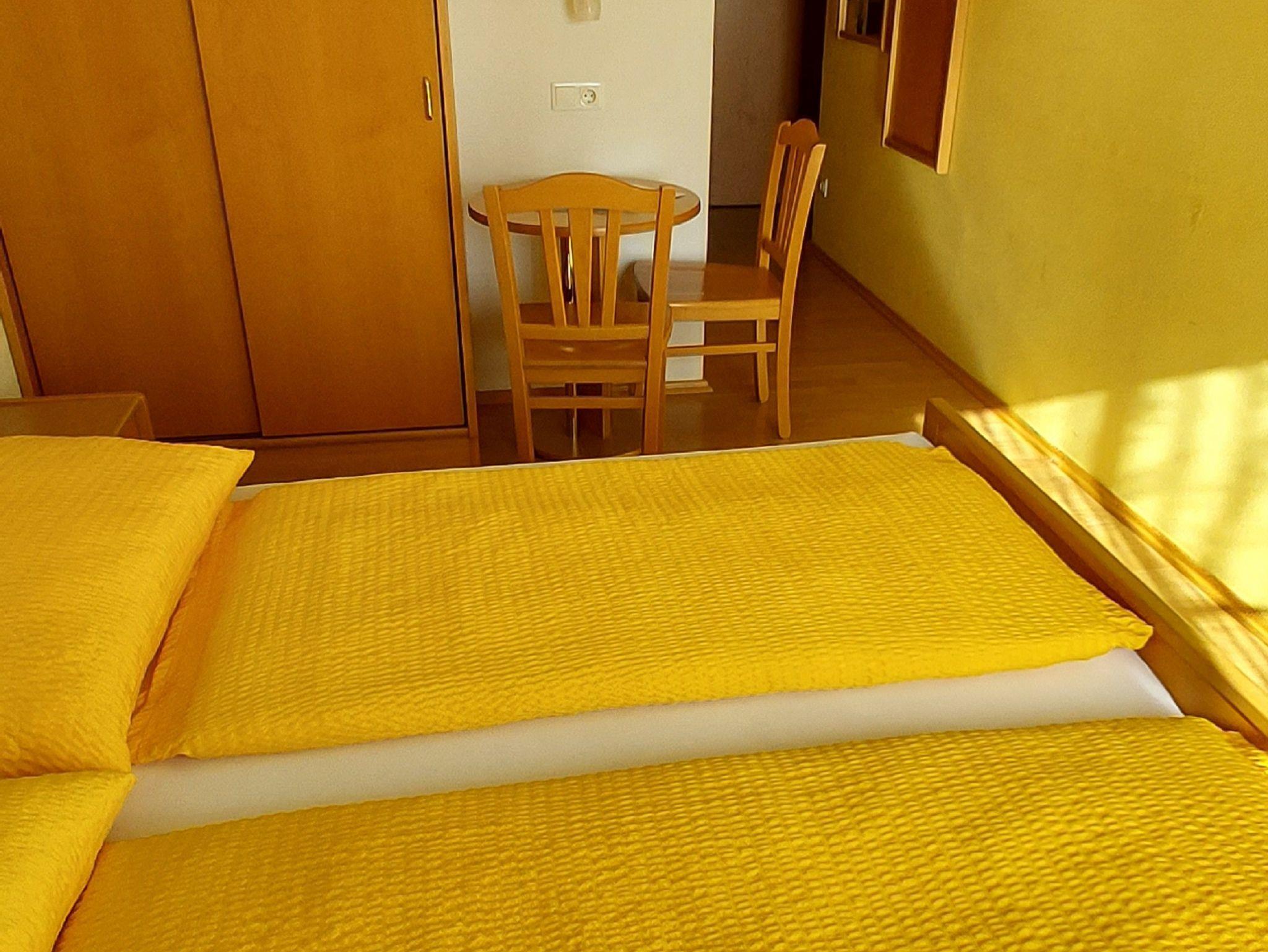 Das helle und geräumige Vierbettzimmer mit 30qm bietet einen traumhaften Blick auf die Berge. Es verfügt entweder über ein Doppelbett und zwei Einzelbetten oder ist mit zwei Doppelbetten ausgestattet. Ein Kleiderschrank und TV befinden sich ebenfalls im Zimmer. Das Badezimmer mit Dusche oder Badewanne, WC und Fön rundet das Gesamtbild ab. Auf dem Balkon können Sie entspannte Abende verbringen. Haustiere sind gestattet. Möglicherweise fallen Gebühren an. Das WLAN und den Parkplatz vor dem Haus können Sie kostenfrei nutzen.