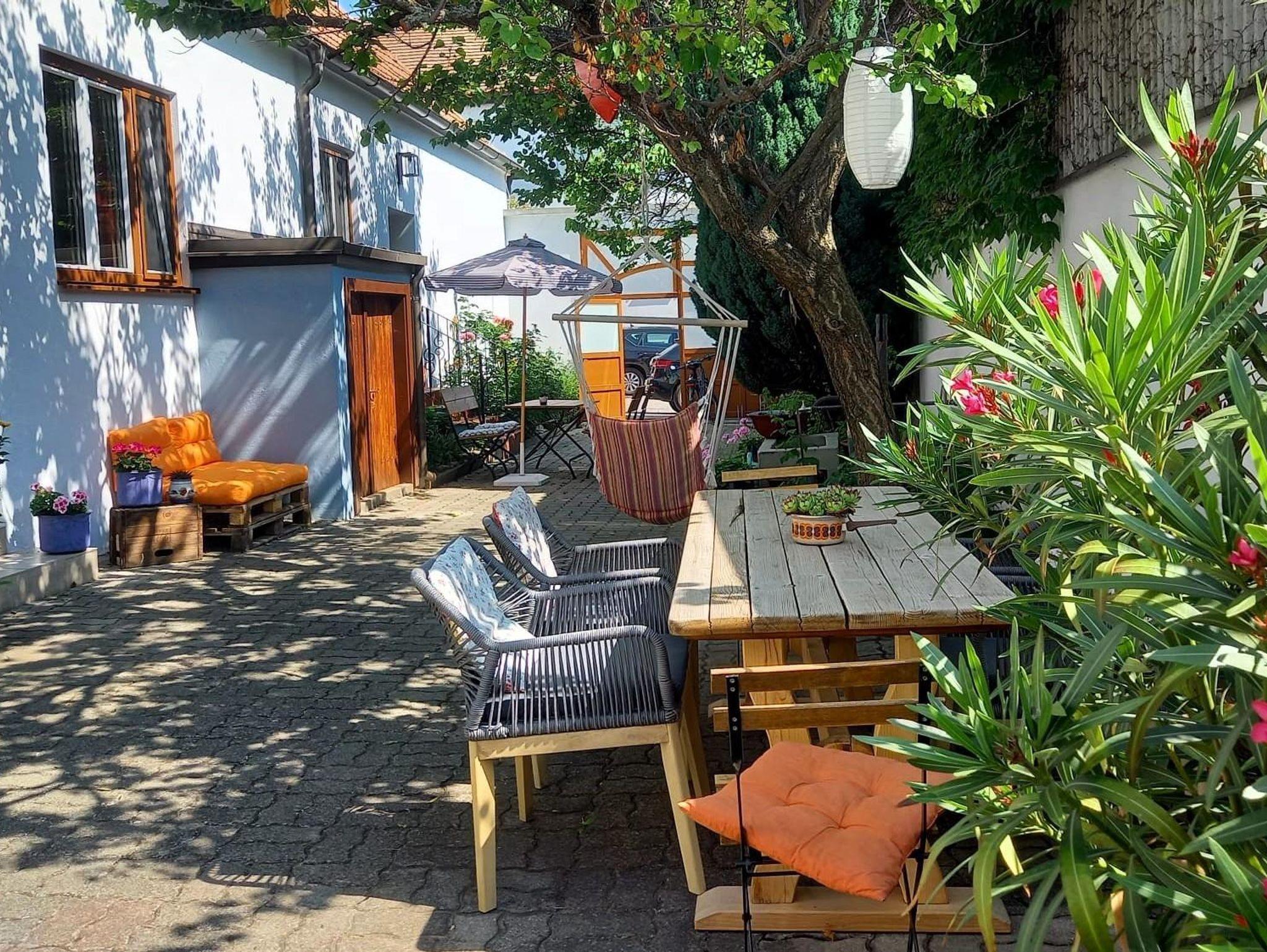 Wohlfühlen bei pannonischer Gastfreundschaft in einem typisch burgenländischen Innenhof geschmückt mit blühenden Oleandern. Dort haben Sie die Möglichkeit das Frühstück vom Buffet mit hausgemachten Marmeladen, sowie Produkten vom hauseigenen Garten bzw. der Region zu genießen. Den Abend können Sie entspannt bei einem Gals Bio-Wein oder Bio-Traubensaft ausklingen lassen. Sie können wählen zwischen Doppelzimmer, Familienzimmer oder unserer neu renovierten Ferienwohnung.