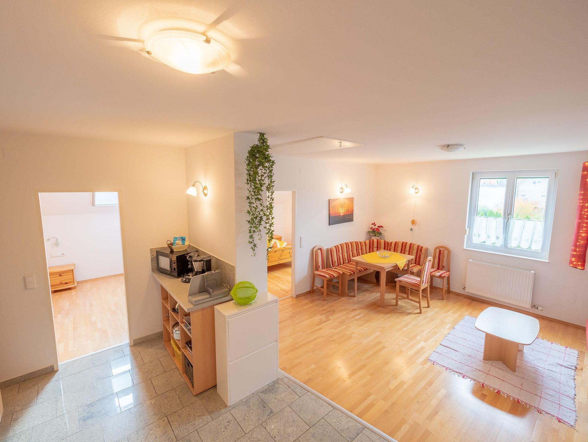 Die 3 geräumigen Ferienwohnungen mit voll ausgestatteter Küche, Essplatz, Dusche und WC (getrennt) bieten Platz zum Wohlfühlen und Entspannen.