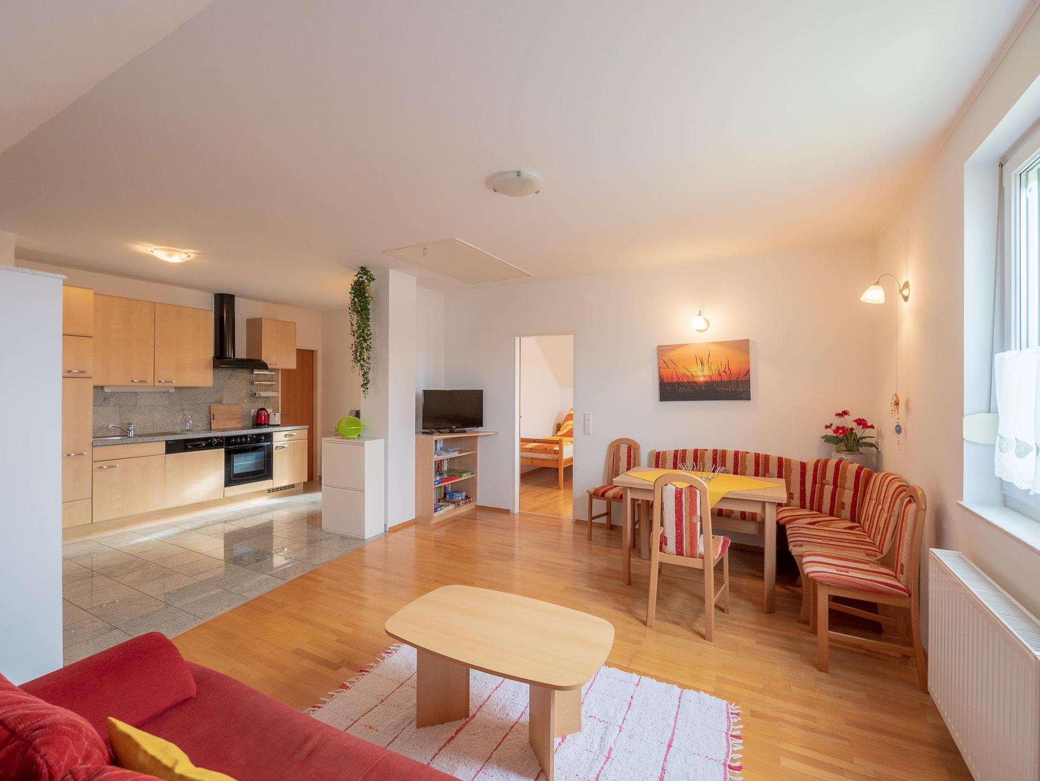 Die Wohnung ist 82 m² groß, hat 2 Schlafzimmer. Das Appartement ist voll ausgestattet: Föhn,Hand- u. Badetücher, Bettwäsche sowie Geschirr, 4-Plattenherd, Geschirrspühler, Gefrierschrank, Kaffeemaschine, sowie eine Kaffeepadmaschine, Toaster, Wasserkocher, Mikrowelle, Kabel-TV und Internetanschluß in der Wohnung, WLAN im ganzen Haus und Garten gratis. Auch Parkplätze stehen gratis zur Verfügung