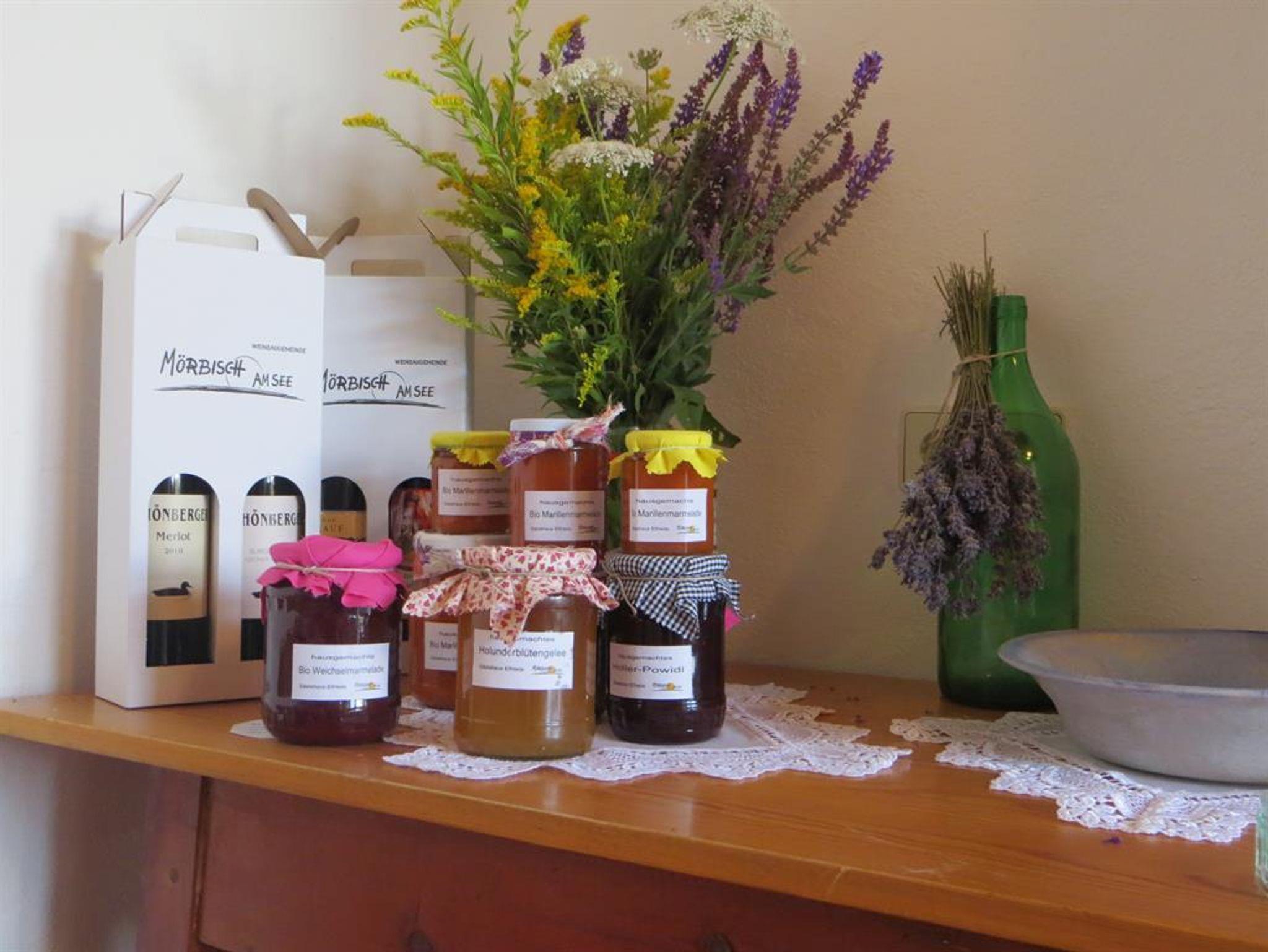 reichlich und gut(selbstgemachte Marmeladen und Kuchen).