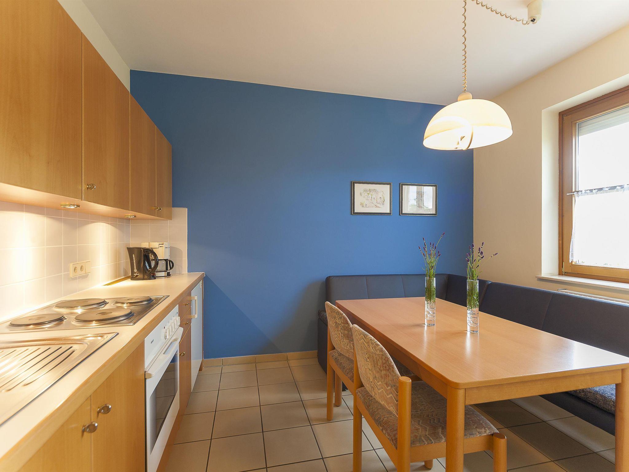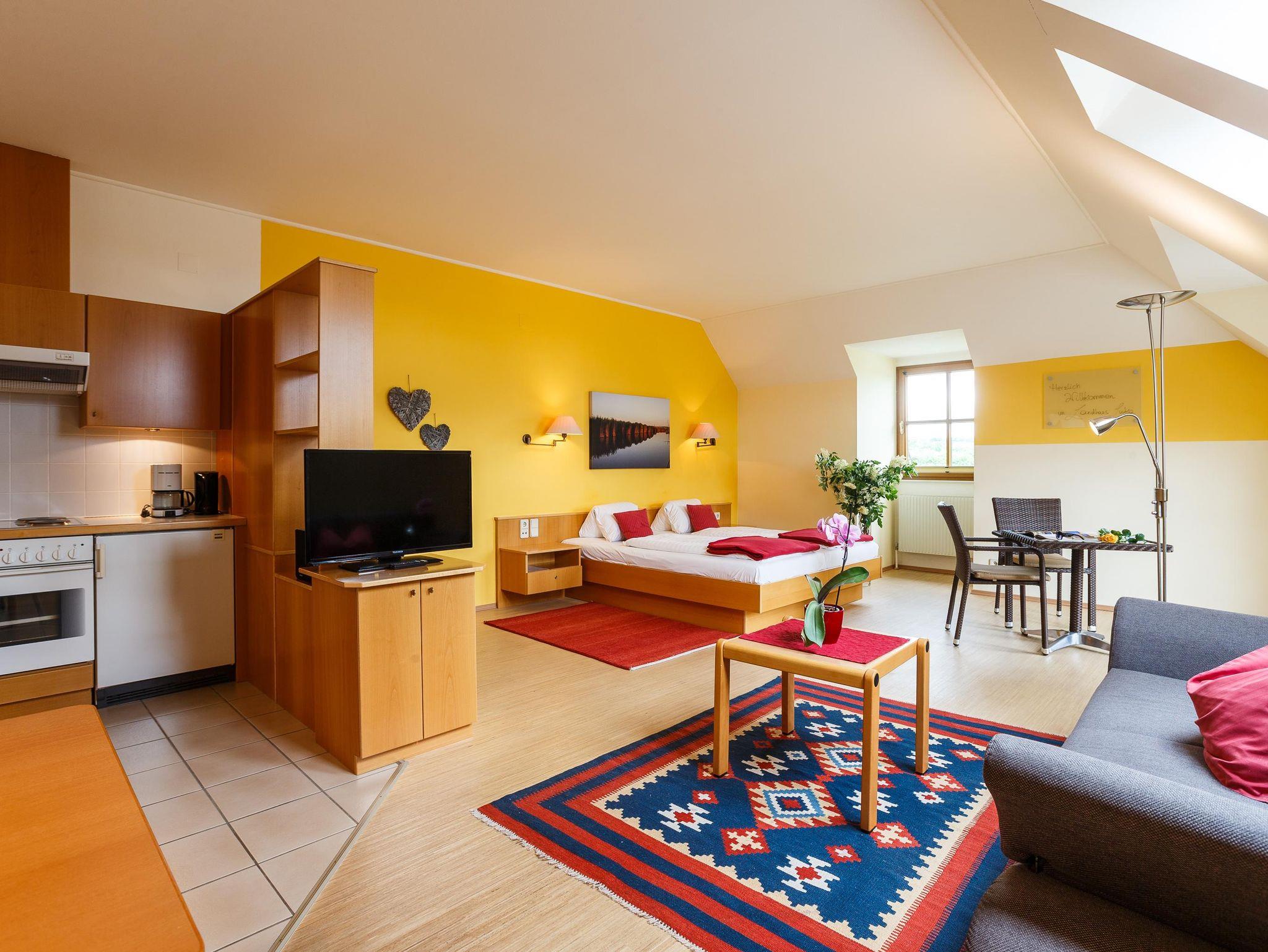 Schön ausgestattetes, gepflegtes Komfort-Appartement mit naturgeöltem Echtholz-Parkett (ca. 45 m²). Ein Wohnraum mit gemütlicher Sitzecke, moderner Küche mit Eßplatz (Eß- und Kochgeschirr vorhanden) und optisch getrennt vom Schlafzimmer (Doppelbett). Balkon, Radio mit CD Player, WellnessDusche, WC. Komplette Wäsche vorhanden, individueller Wäschewechsel! High-Speed-WLan kostenlos.