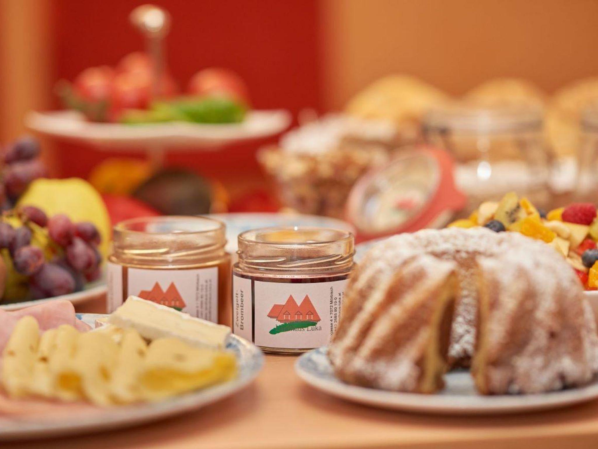 Luka's-Genuss-Frühstück (auf Wunsch) mit hausgemachten Marmeladen, burgenländischen Produkten und Kaffeespezialitäten wie Wiener Melange oder Latte Macchiato auf Knopfdruck.