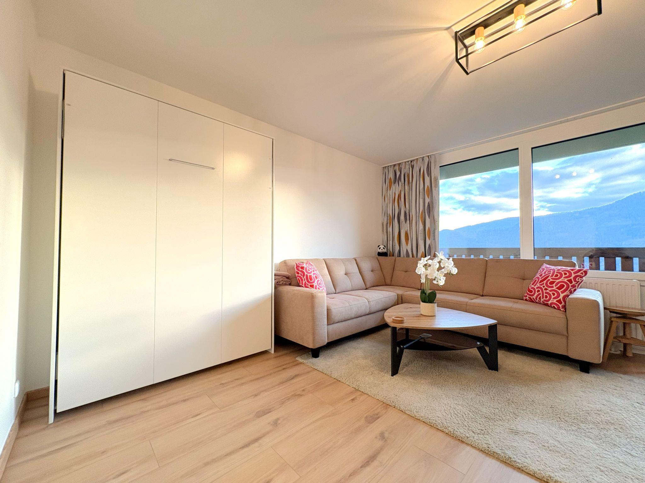 "Top A", 1-room apartment 39 m2, on the ground floor. Bright, partly renovated in 2024, cosy furnishings: entrance hall. Living room with 2 fold-away beds, dining table and cable TV (flat screen). Exit to the balcony. 1 room with 2 beds. Small kitchen (3 hot plates, toaster, freezer, electric coffee machine). Shower/WC. Heating. Balcony 10 m2. Balcony furniture. Very beautiful panoramic view of the mountains and the countryside. Facilities: hair dryer. Parking. Please note: non-smokers only, non-smoking house. Beautiful location, ideal starting point to explore the Ski Amadé world. 50415-006730-2020