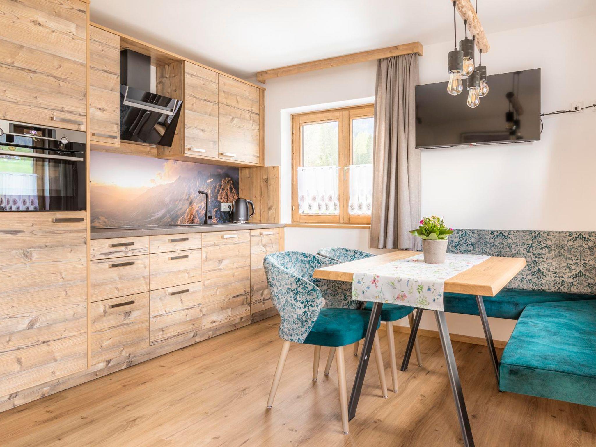 Unsere neu gestaltete Ferienwohnung „Weitsicht“ bietet, wie der Name schon verrät, eine herrliche Weitsicht über das Tal mit Blick in Richtung Nachbarort Bischofshofen. Mit ca. 35 qm bietet sie Platz für bis zu vier Personen, ideal für Familien oder Paare. Die modern, rustikal gestaltete Wohnung besteht aus einem Schlafzimmer für zwei Personen mit Doppelbett und einem Wohnbereich mit Ausziehcouch und Schlafmöglichkeit für zwei Personen. Zudem verfügt die Ferienwohnung „Weitsicht“ über ein Badezimmer mit Dusche und eine separate Toilette. Die Küche im Wohnbereich bietet Ihren Gästen einen Elektroherd, Backofen, Mikrowelle, Kaffeemaschine, Wasserkocher, Toaster und auch eine Geschirrspülmaschine.