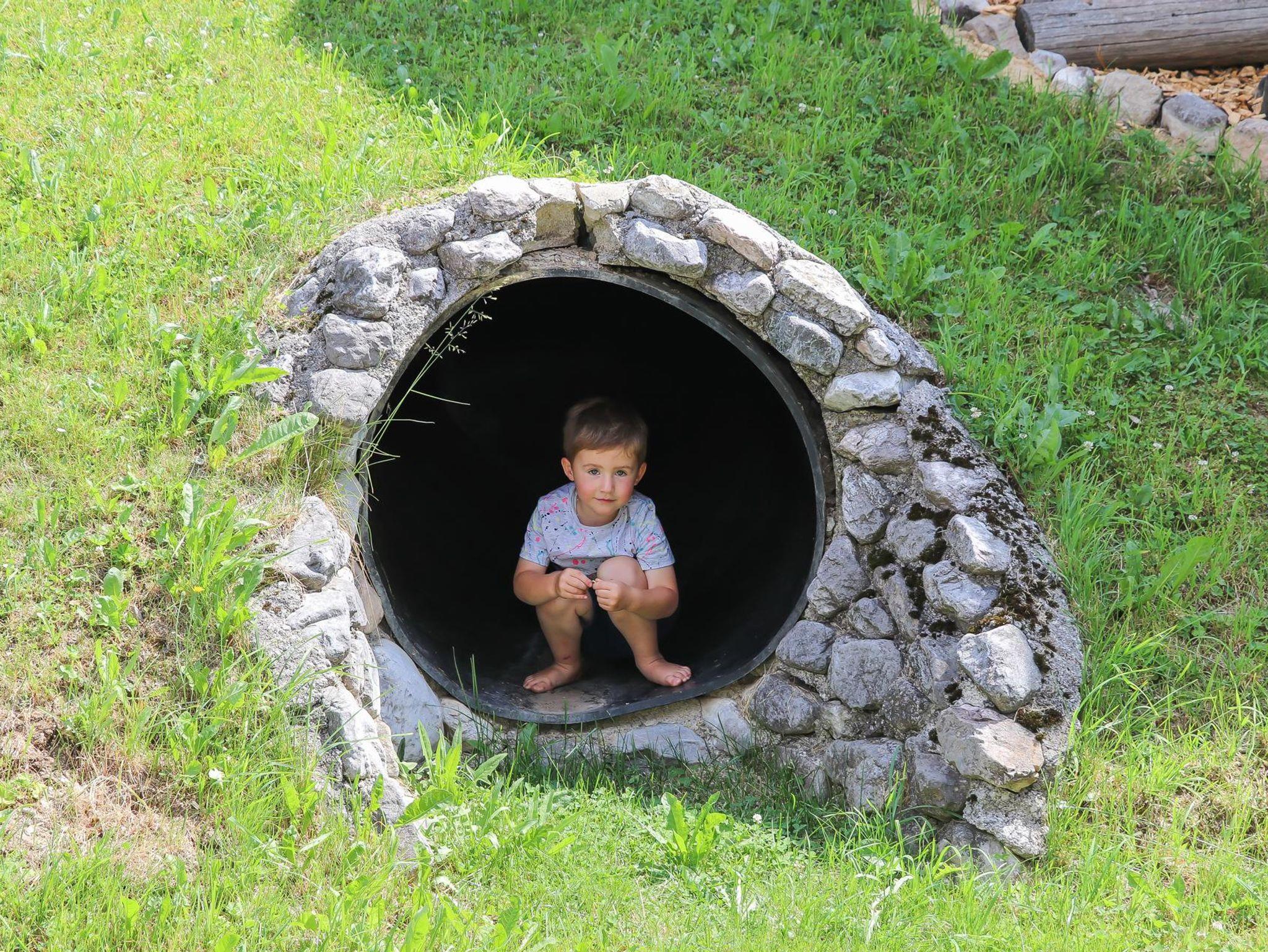 Erlebnisspielplatz für unsere Kid`s mit Höhle, Trampolin, Affenrutsche, Gokart´s, Schaukel, Sandkasten und vieles mehr.