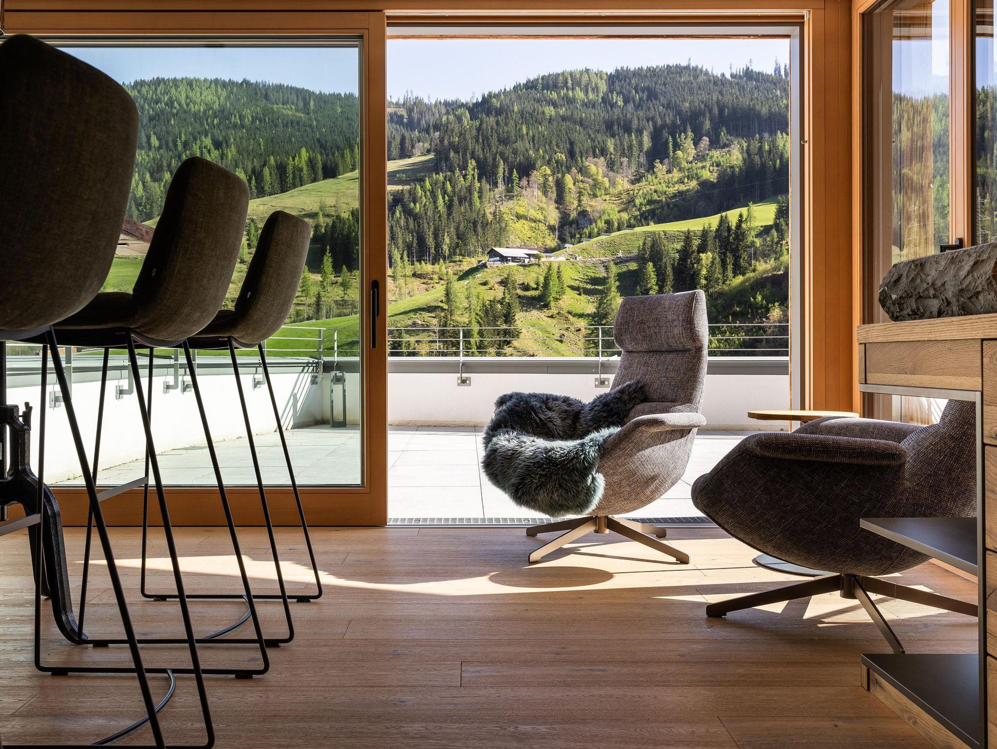 • Design: Hochwertige Echtholzböden, holzverkleidete Wände für eine alpine Atmosphäre.