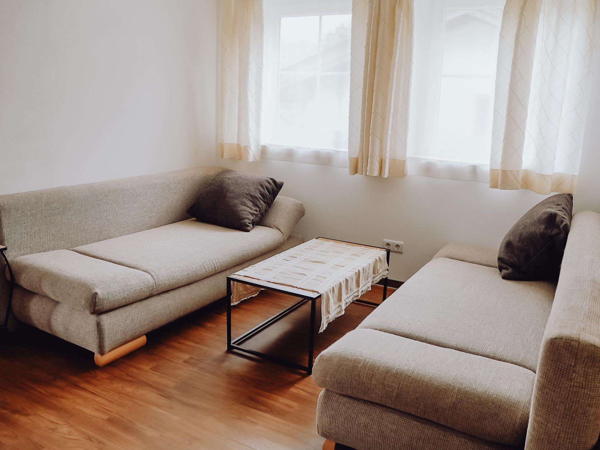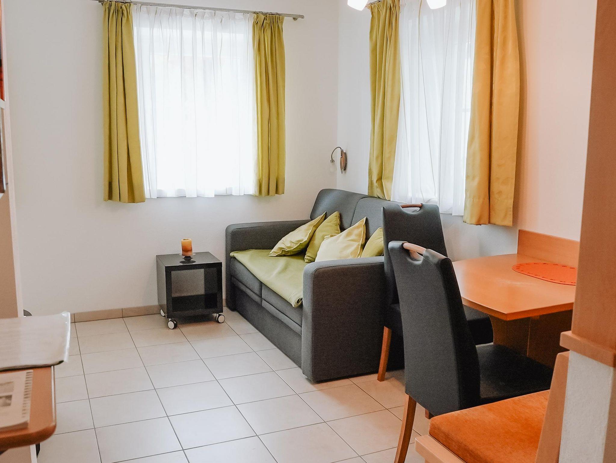 Das gemütliche Schwalbenwand Studio im Untergeschoss bietet 45 m² für 2 Personen. Es verfügt über einen Wohn-/Essbereich mit abgetrenntem Schlafbereich, eine voll ausgestattete Küche, ein modernes Bad, separates WC sowie eine sonnige Terrasse mit Gemeinschaftsgarten und Bergblick.