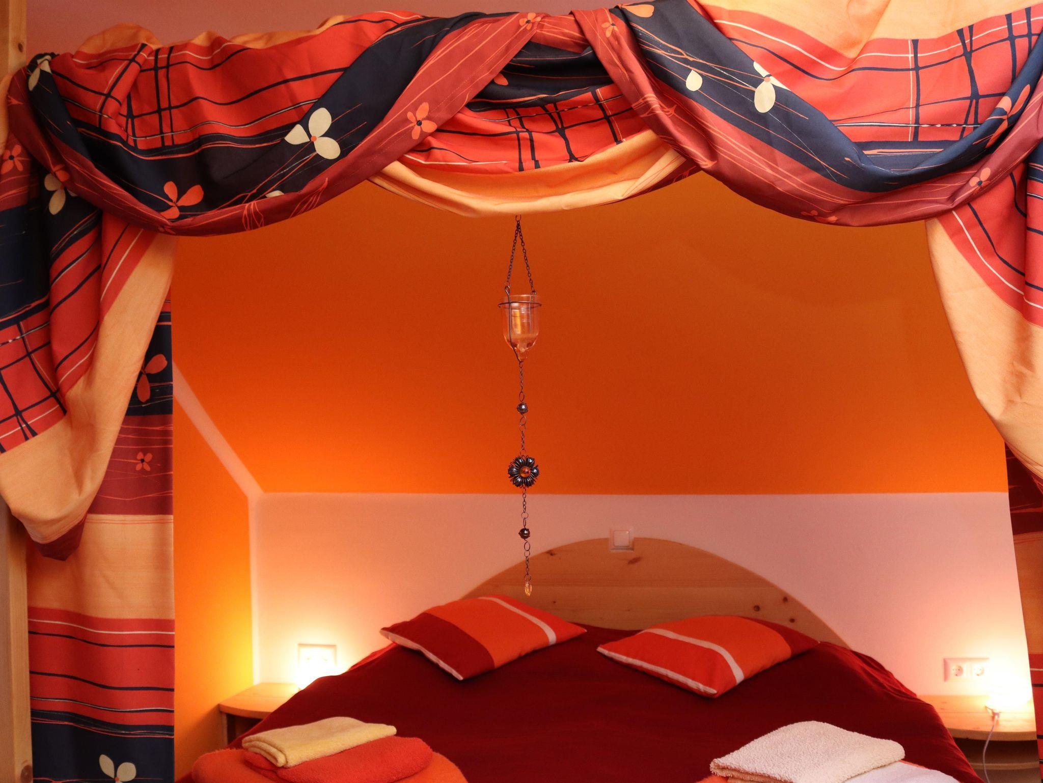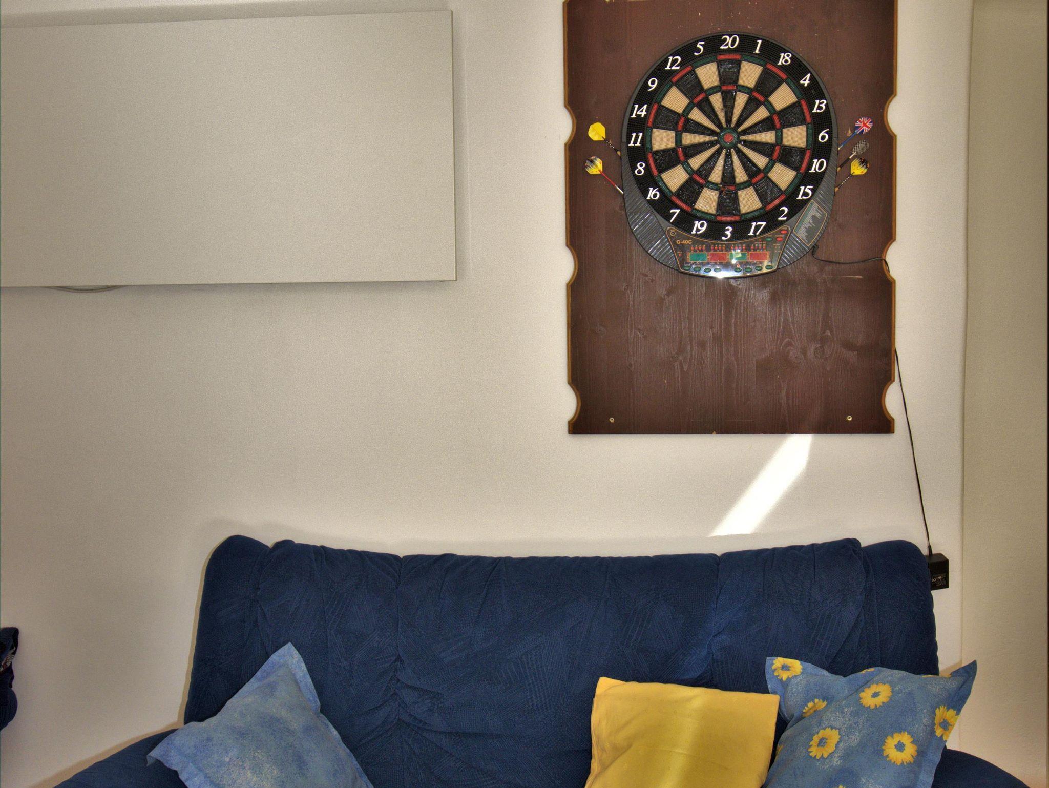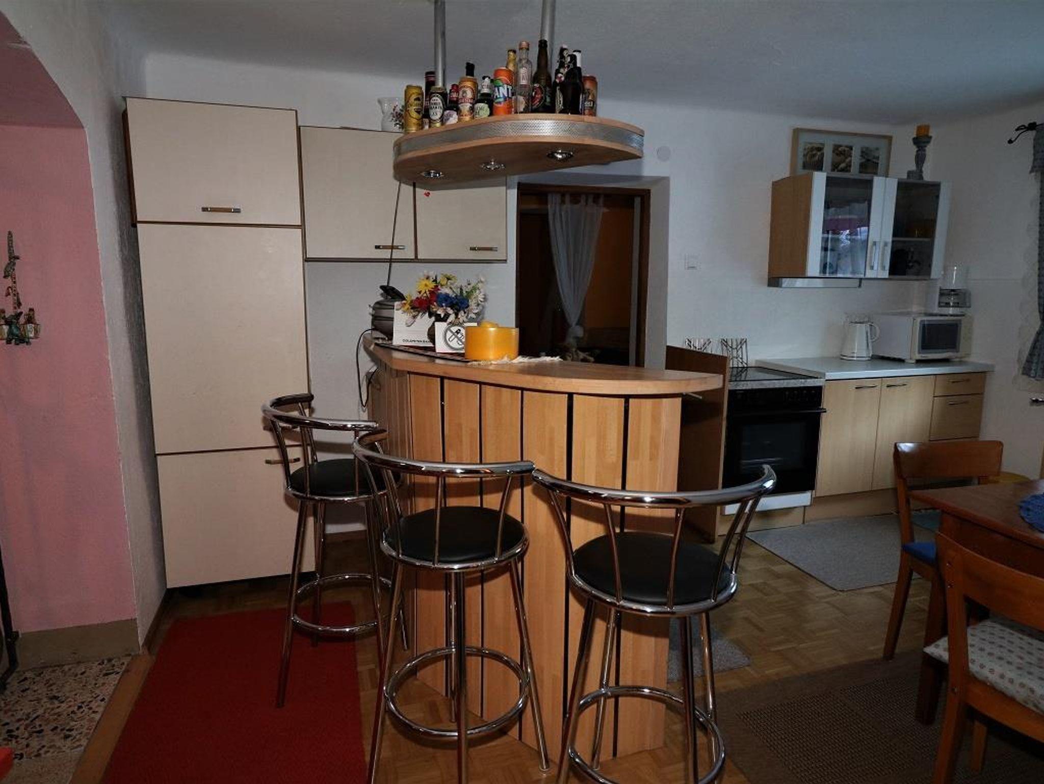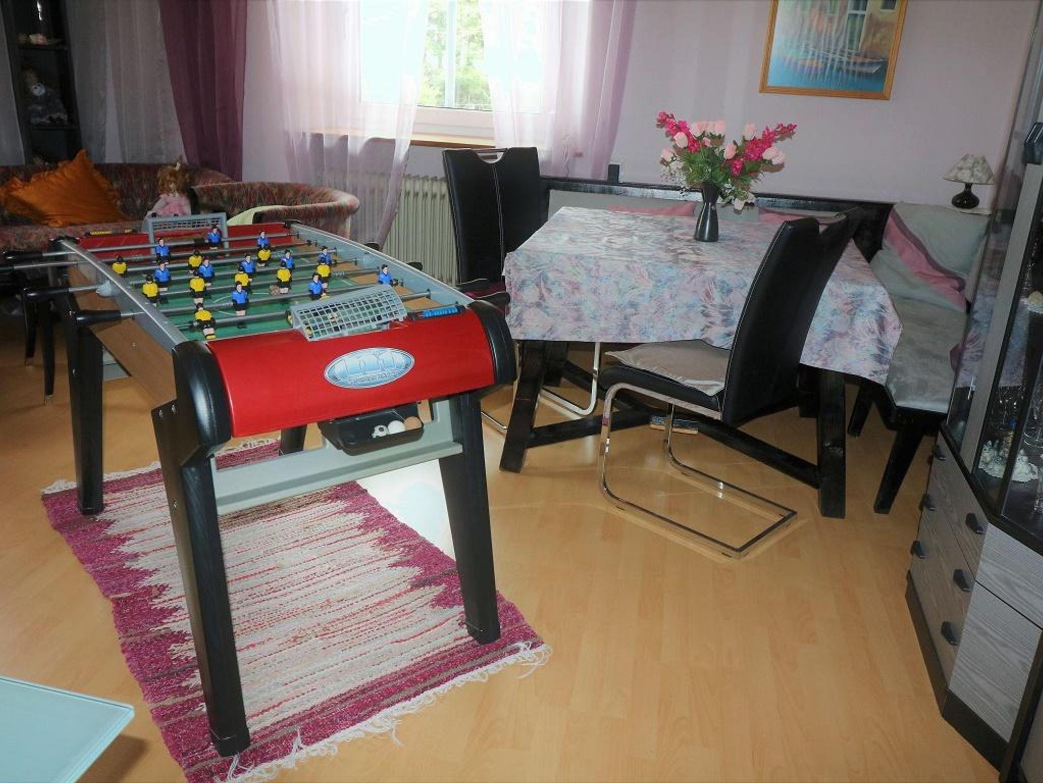 Erdgeschoß: 100 qm, 1 Doppelzimmer, 1 Dreibettzimmer, Küche (Mikrowelle, Geschirrspüler) mit Bar, Wohnzimmer, SAT-TV, CD-/DVD-Player, neues Bad (Dusche,Bidet, WC), separates WC, Waschmaschine, Kaminofen, Tischfußballtisch, WLAN