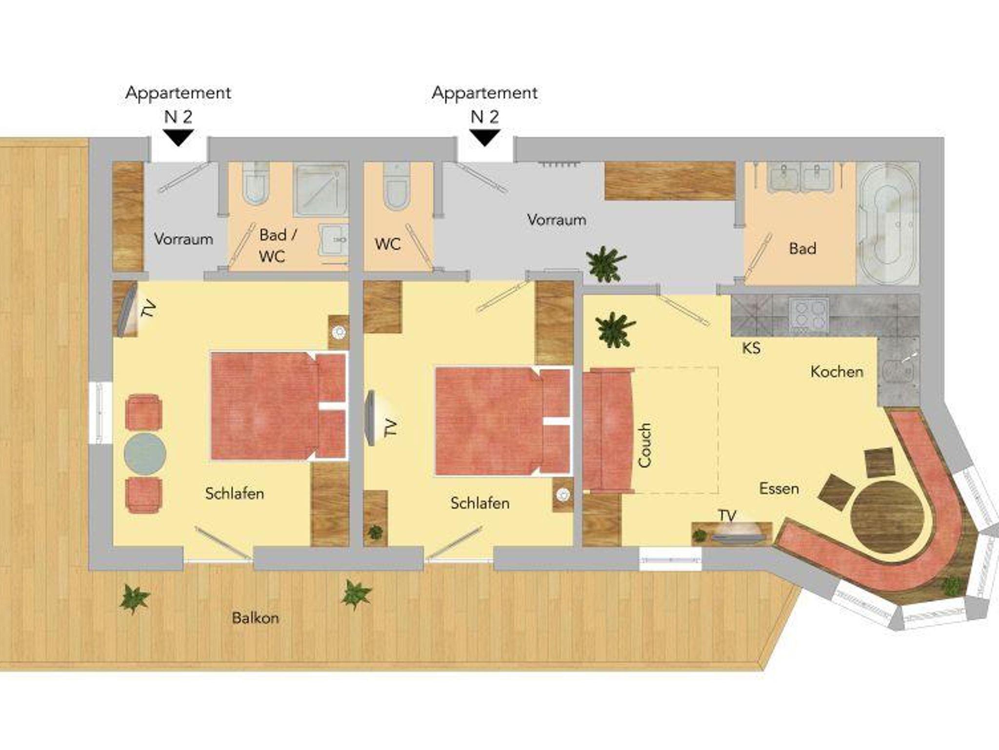Pension Anny, N - 2 Appartement/2 Schlafräume, Dusche, WC,