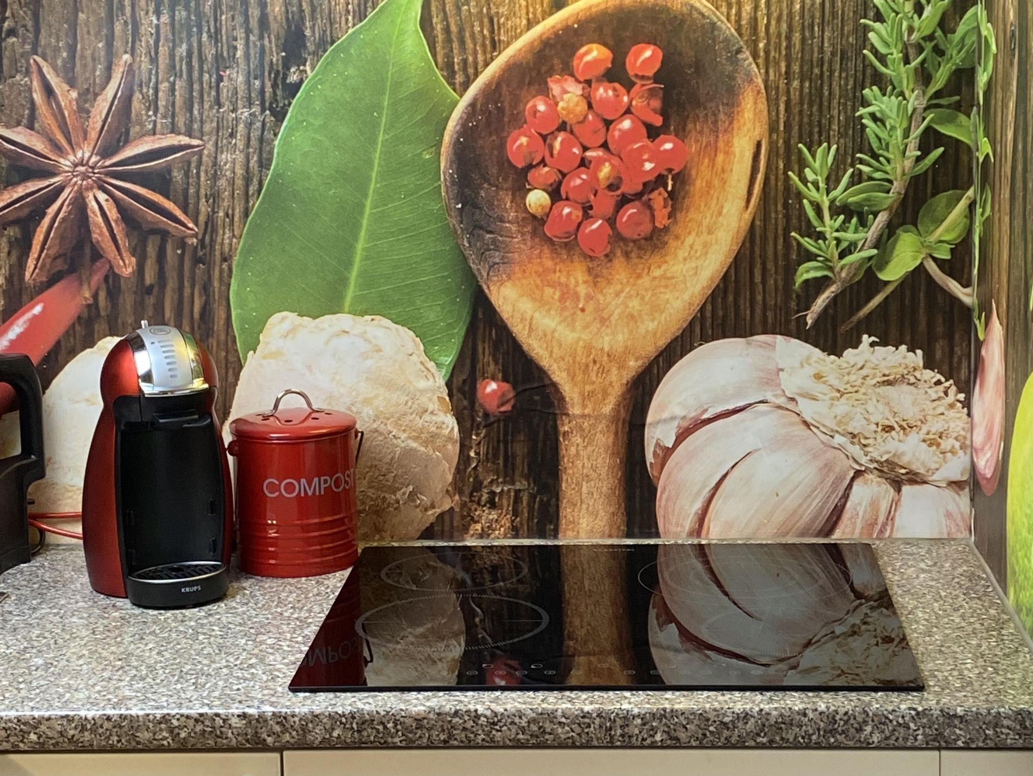 neue gut ausgestattete Küche mit Spüler und Mikrowelle