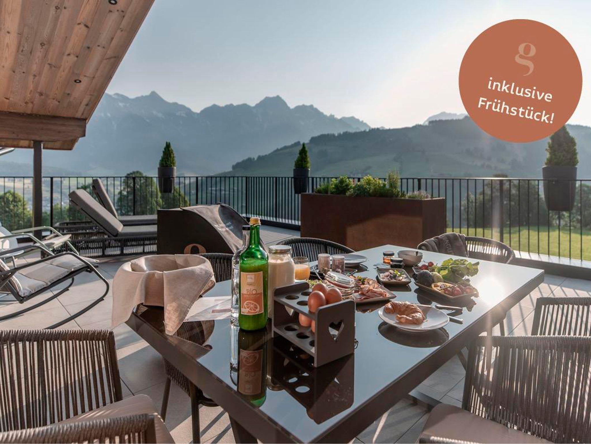 2 – 4 Personen, inklusive Frühstück in den Suiten Dem Himmel so nah: Die Ruhe am Land in diesem Apartment genießen und in der eigenen Sauna entspannen. Dabei die Bergwelt vom Balkon aus hautnah erleben.