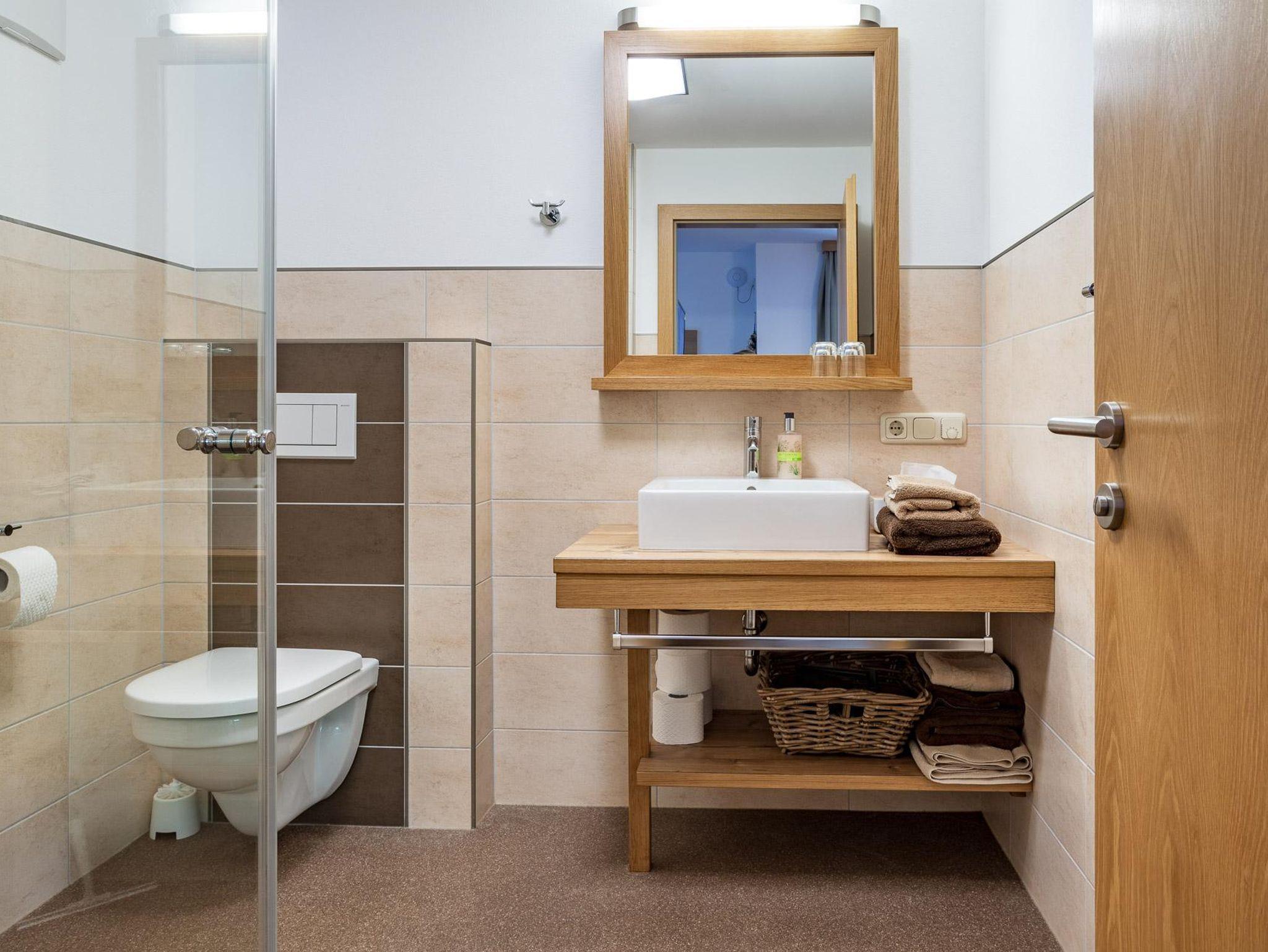 2 Bäder jeweils mit Dusche und WC, Fön, Seife, Kosmetiktücher, Handtücher