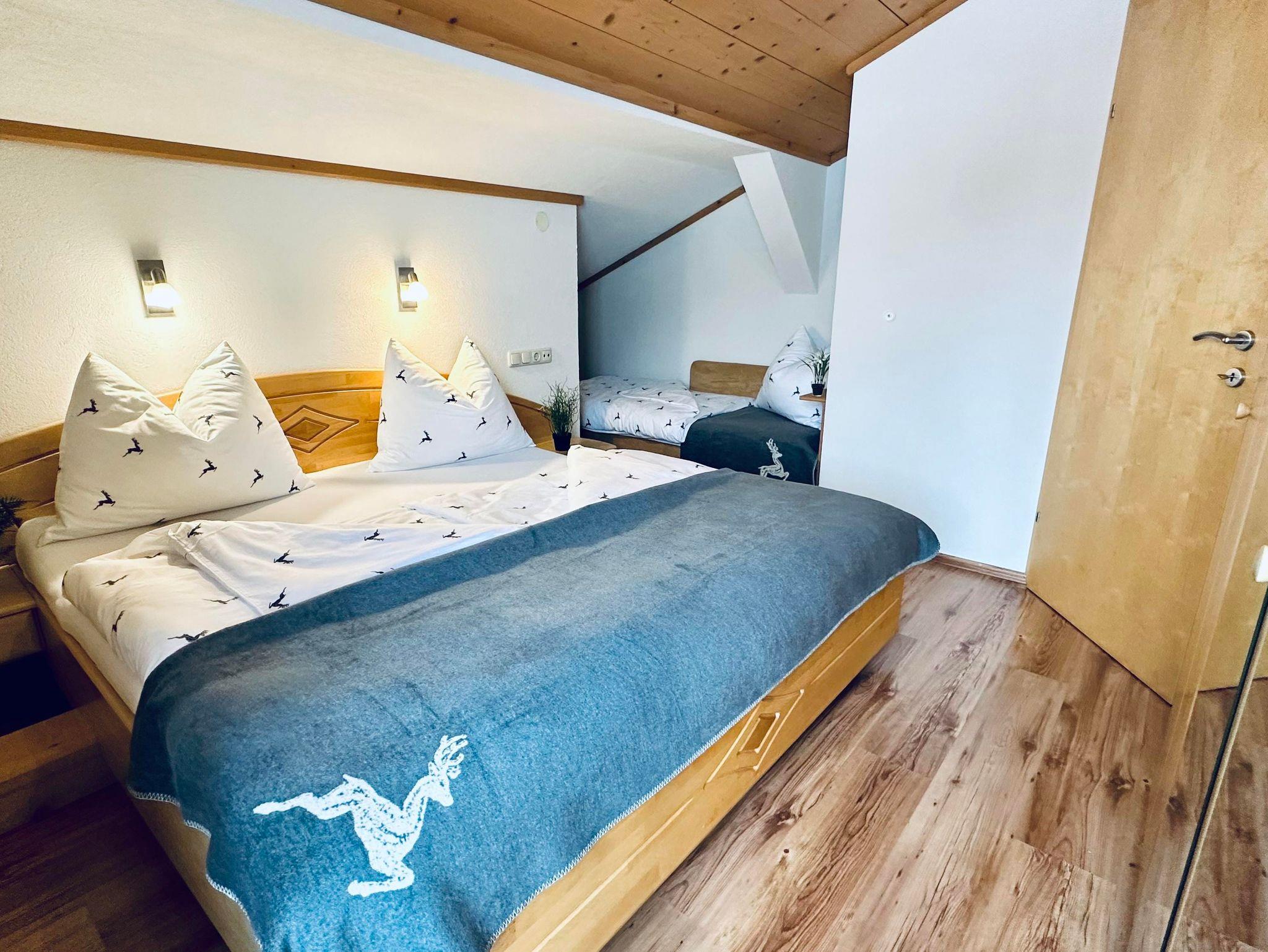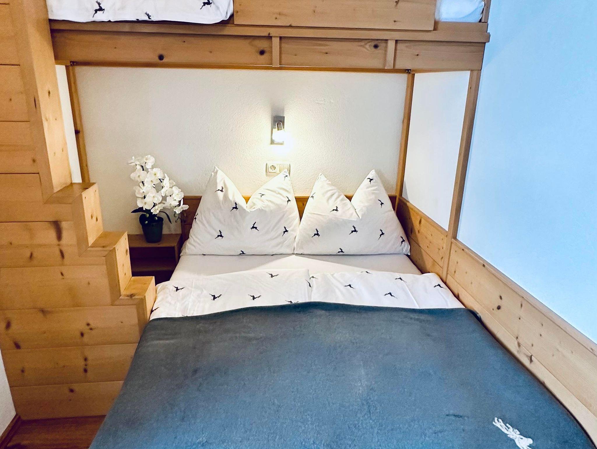 erhöhten (h=160m)., massiven Stockbett (90x200), in jedem Schlafzimmer steht auch ein Kleiderschrank. Beide Zimmer mit Balkon und Bergblick zum Steinernen Meer-