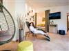 Der Wellnessbereich am Dach mit Panormasauna, Ruheliegen und Sonnenterrasse verspricht erholsame Momente.