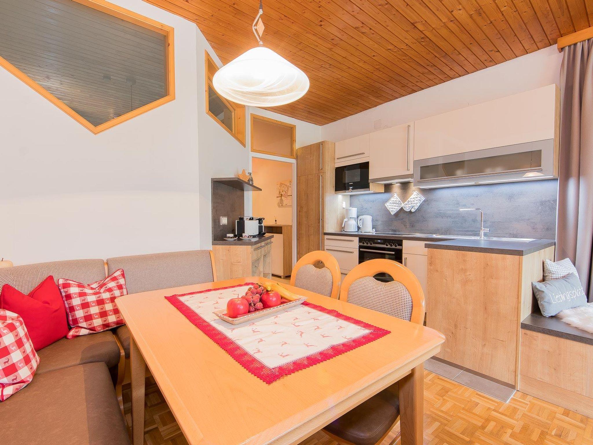 Unsere gemütlich eingerichtete und größtenteils neu renovierte Ferienwohnung in Maria Alm bietet nicht nur ein Ambiente zum Wohlfühlen, sondern ist gleichzeitig der ideale Rückzugsort nach einem sportlich aktiven Tag. Mit großzügigen 64 m² bietet die Ferienwohnung Platz für bis zu 5 Personen, besitzt eine sonnige Terrasse und einen Garten. Selbstverständlich sind gratis W-Lan, Sat-TV sowie ein Skiraum vorhanden - vor allem aber punktet die Ferienwohnung mit der Nähe zum Skilift, zum Loipeneinstieg und zum Dorfzentrum. Zudem kommen unsere Gäste in den Genuss der vielen Vorteile unserer gratis Hochkönig-Card.
