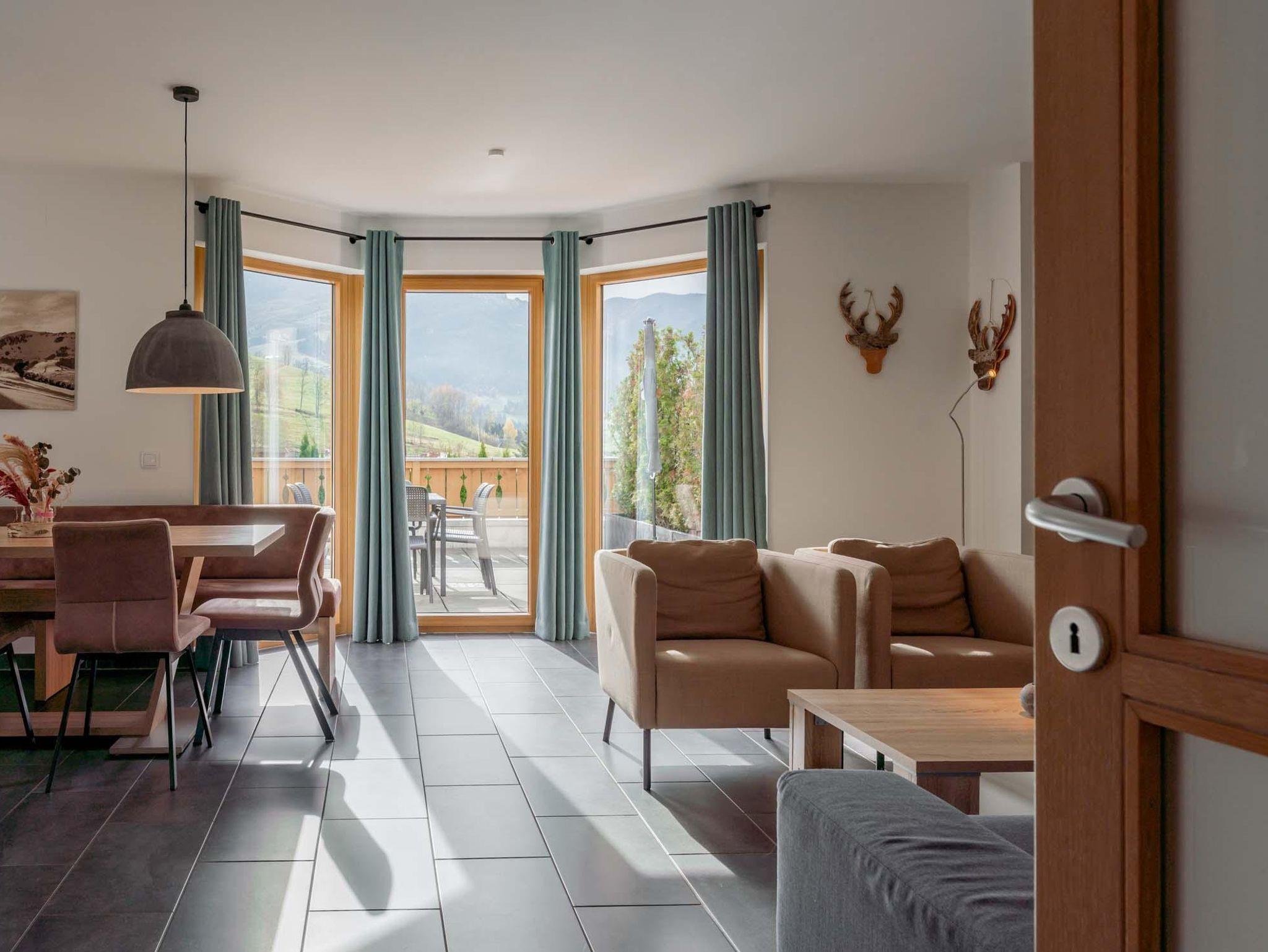 Vom Balkon der Appartements haben Sie einen Logenblick auf die Salzburger Bergwelt. Ihr ganz persönliches Hideaway: Die Appartements des AlpenParks Maria Alm liegen direkt im Zentrum in der Dorfresidence oder je nach Wunsch in der Residence Schmiedhöfl.